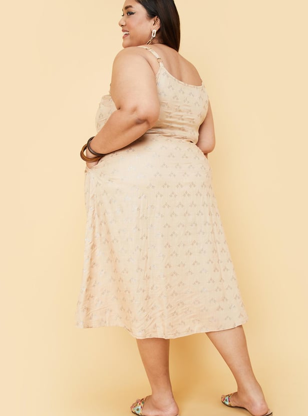 Light up your contemporary couture in this sleeveless dress that is designed with a scoop neck on a printed fabric to cast the perfect impression. Pair this dress with a pair of nude footwear for optimal style.