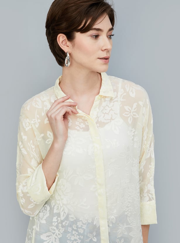This printed shirt features a spread collar, button cuffs, and stylish 3/4th sleeves, offering a versatile and chic addition to your wardrobe. The playful print adds a fun touch while the design ensures comfort and ease.