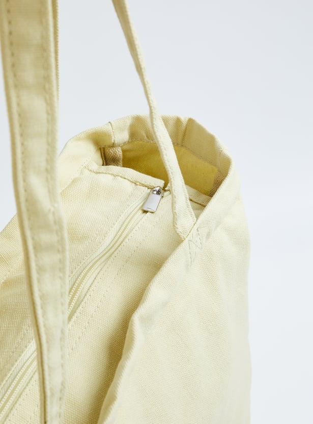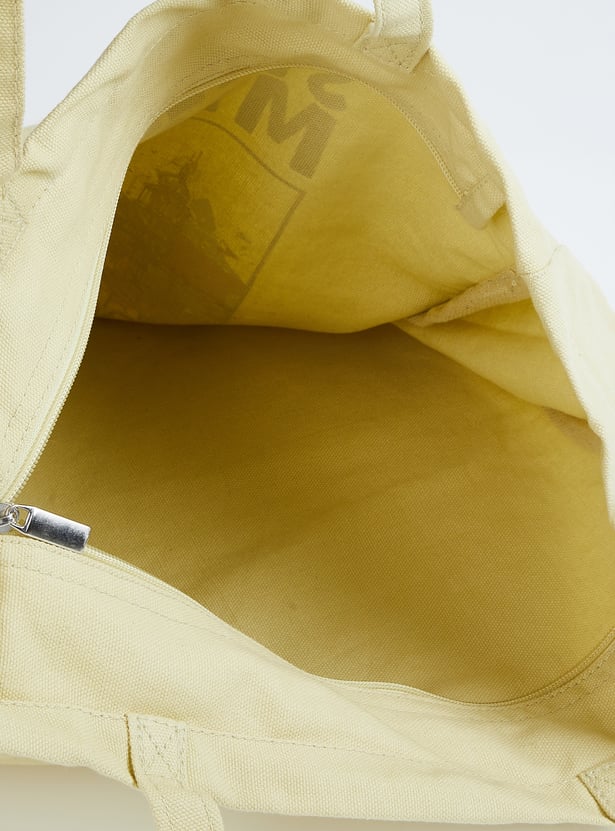 This printed shopper bag features twin handles and a secure zip closure, combining style and function in one roomy design. The vibrant print adds a playful touch, making it perfect for everyday errands or casual outings.