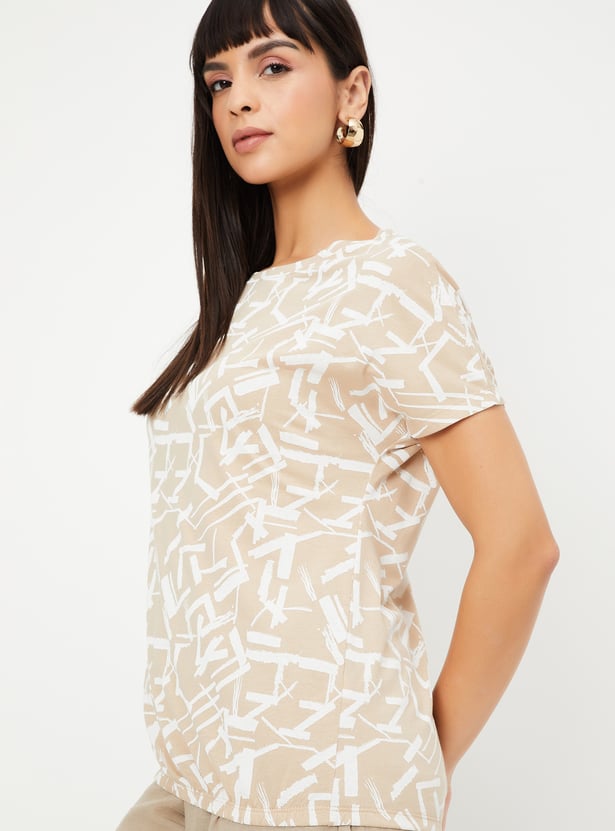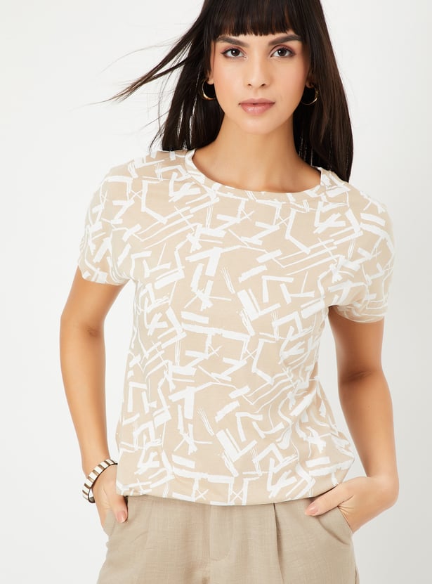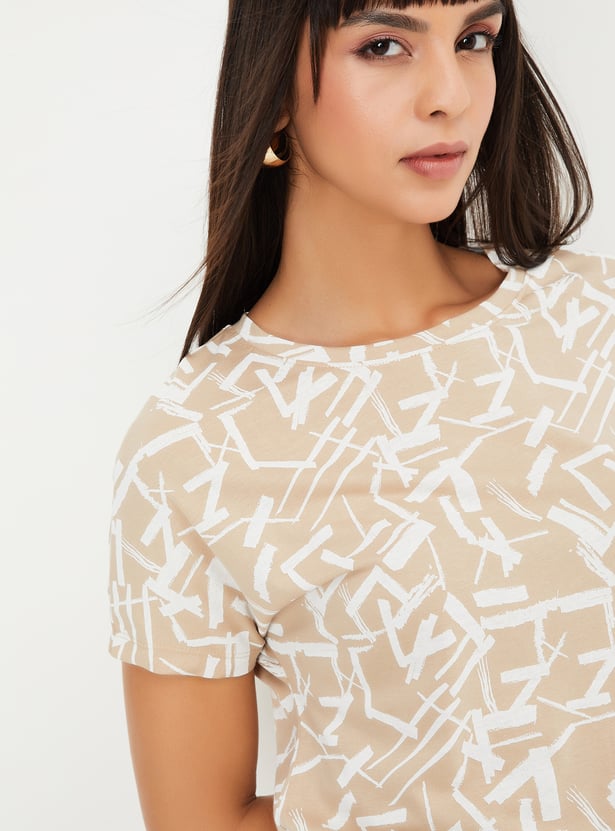 This printed T-shirt adds a fun, expressive touch to your everyday wardrobe. Featuring a classic round neck and half sleeves, it offers a comfortable fit with effortless style—perfect for casual outings. Model Size :