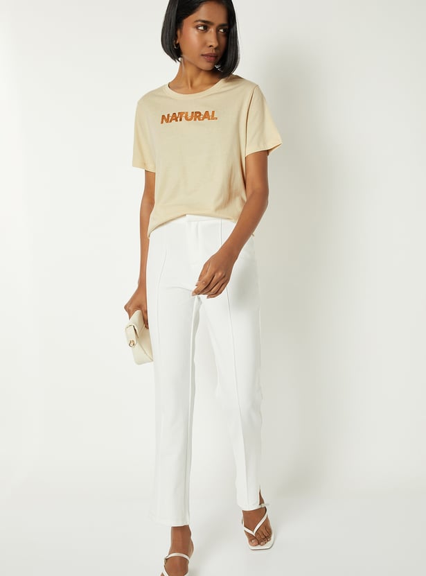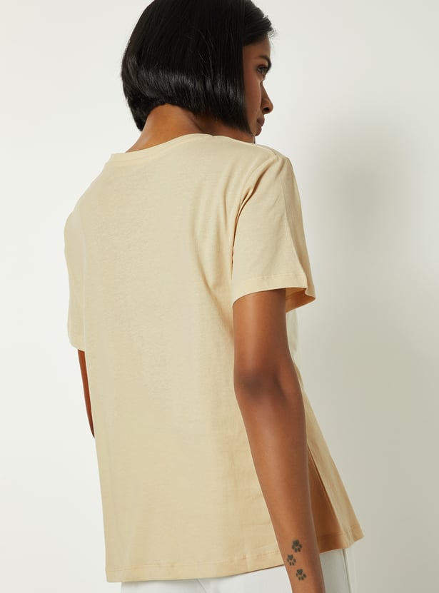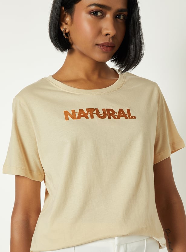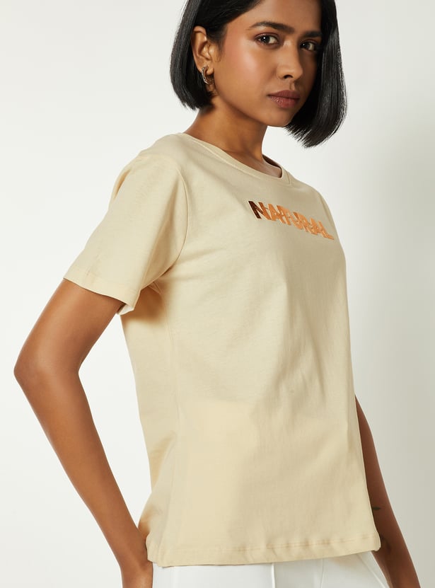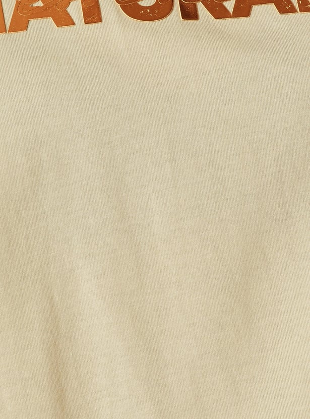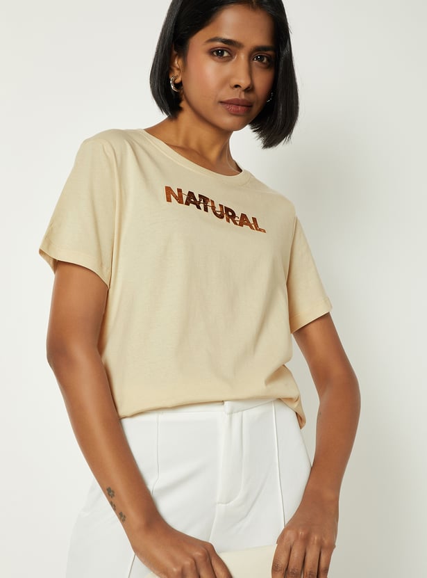 Refresh your everyday wardrobe with this easygoing printed T-shirt featuring a classic round neckline and comfy half sleeves.