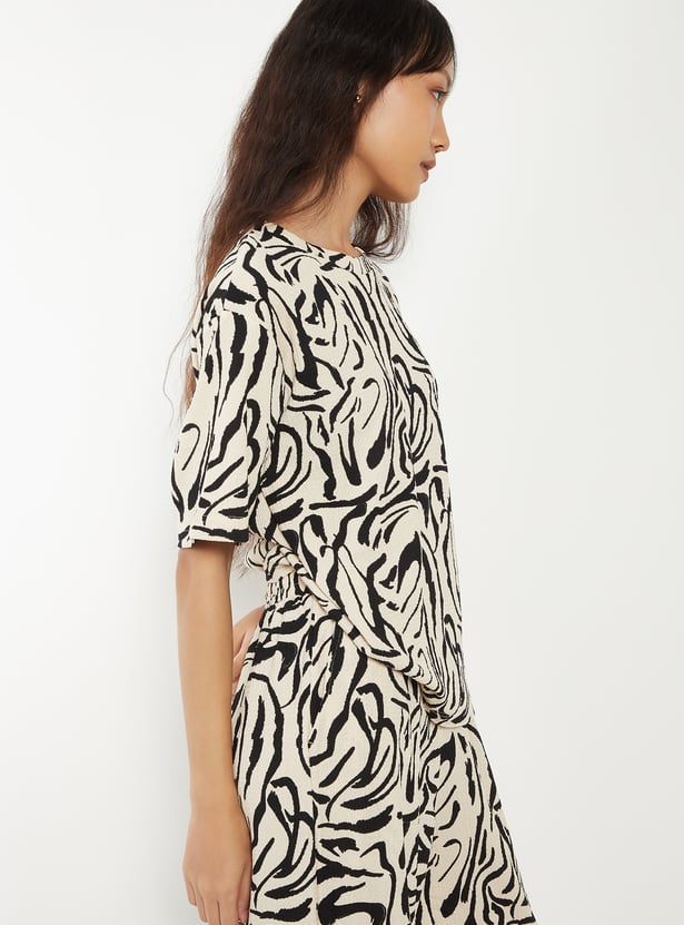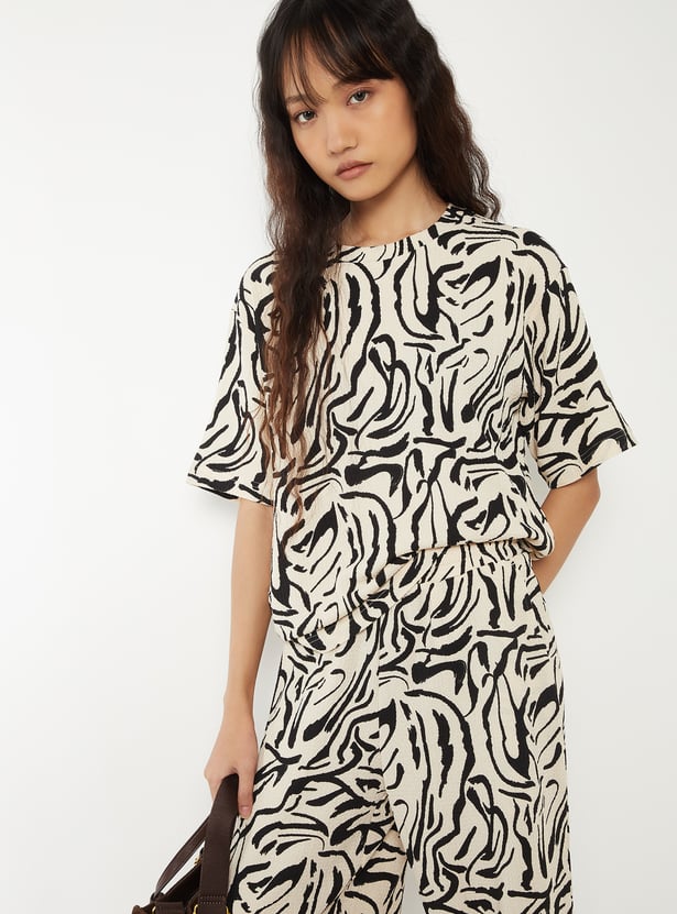 Casual and versatile, this printed t-shirt features a round neck and half sleeves for a classic everyday silhouette. The printed design adds a stylish touch, making it a go-to piece for relaxed outings or daily wear.