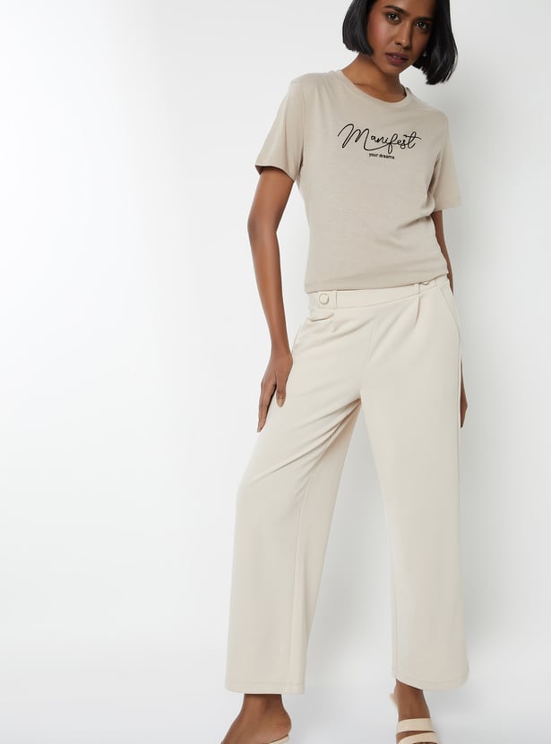 Step up your casual game with this printed T-shirt, designed with a classic round neck and half sleeves for all-day comfort and style.