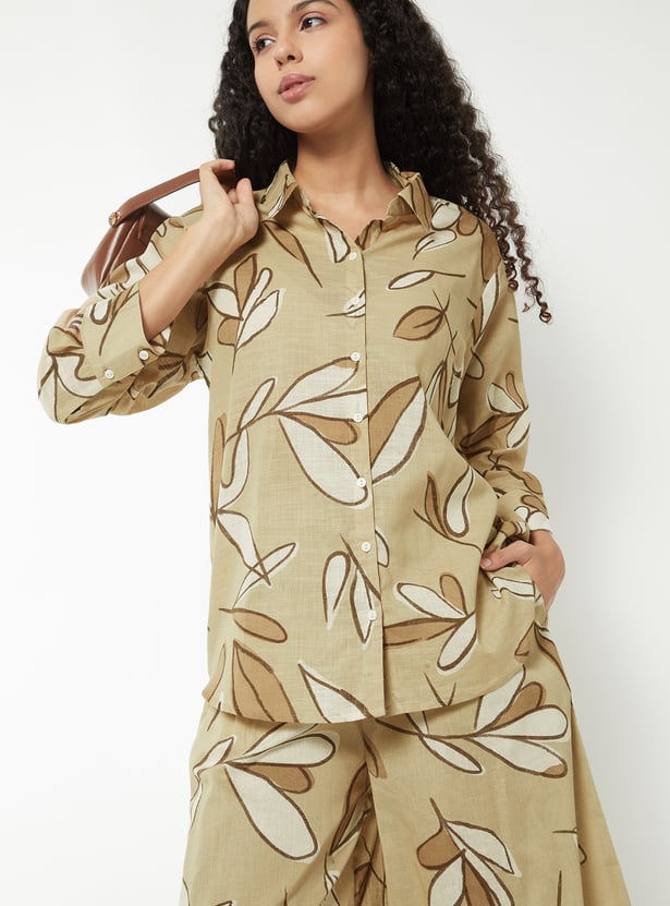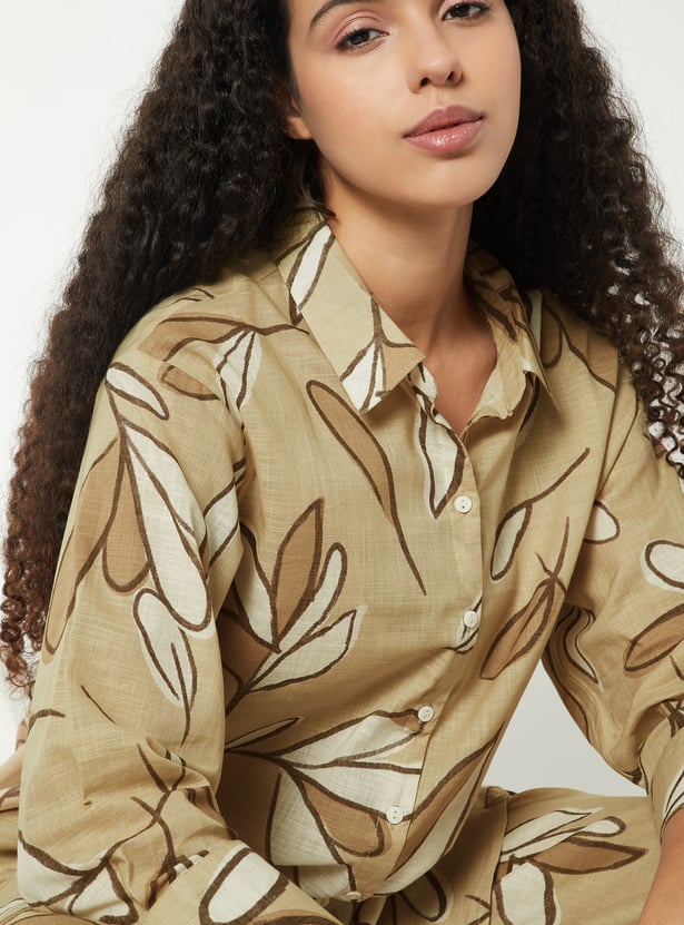 This printed tunic features a breezy shirt collar, a button-down front, and 3/4th sleeves. Designed in a regular fit, it offers a perfect balance of structure and ease for everyday wear.