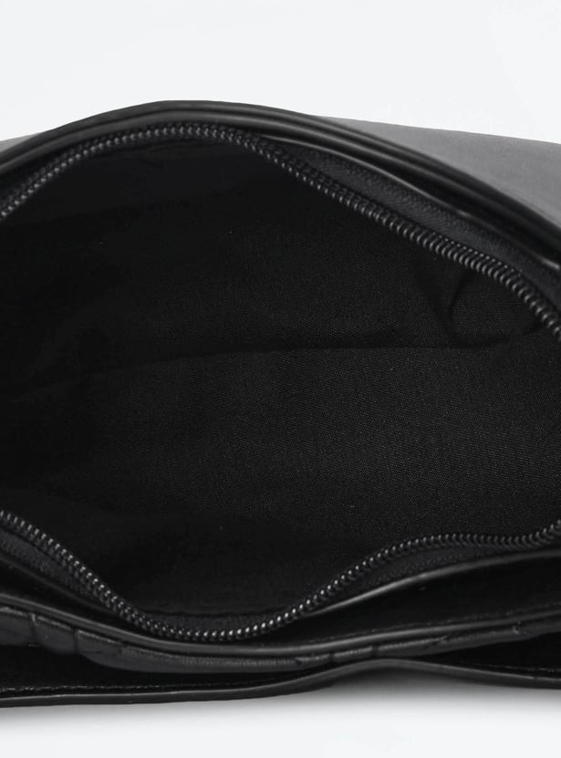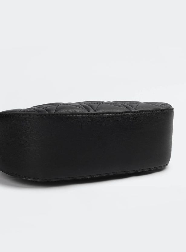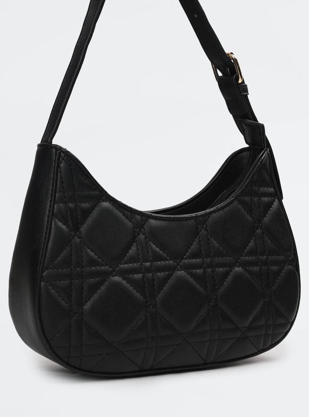 Instantly elevate your outfit with this baguette bag. It is designed with a quilted surface, an adjustable strap, and a spacious compartment to store your essentials with ease.