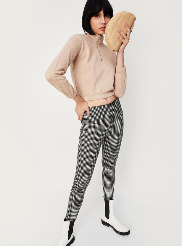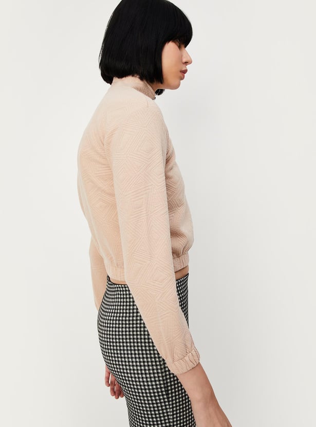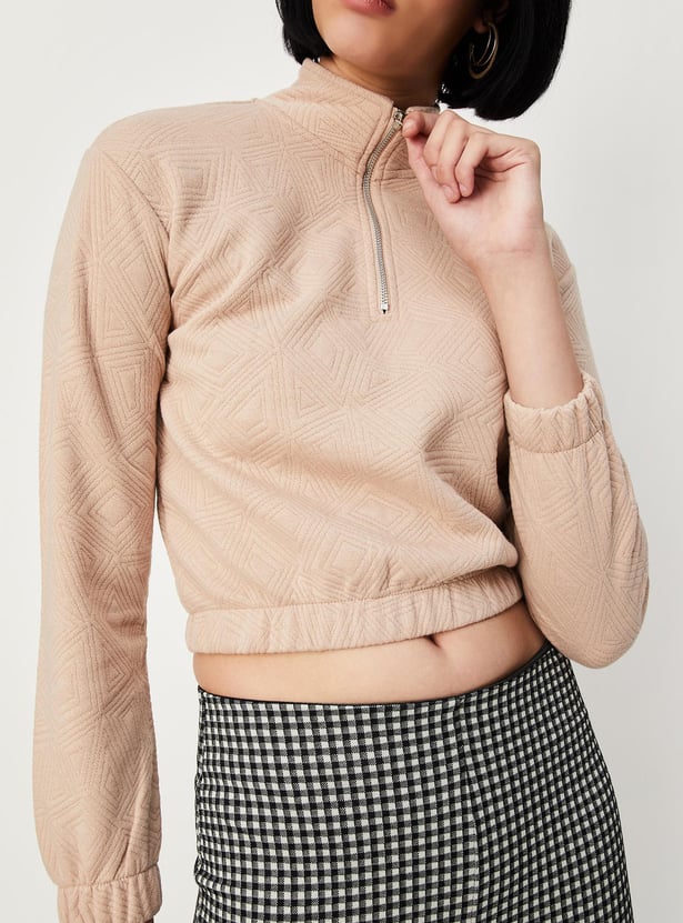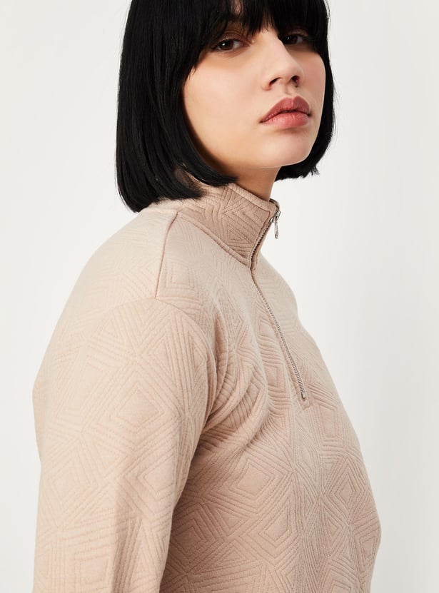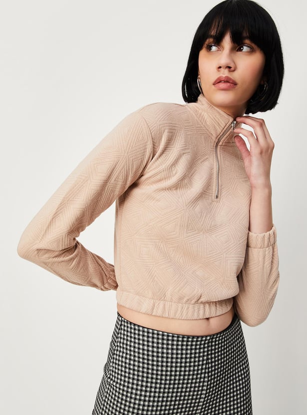 This sweatshirt will keep you warm and cosy during the winter. It features a quilted design, full sleeves, a mock collar with zip and an elasticated hem. Style it with a pair of trousers and boots.