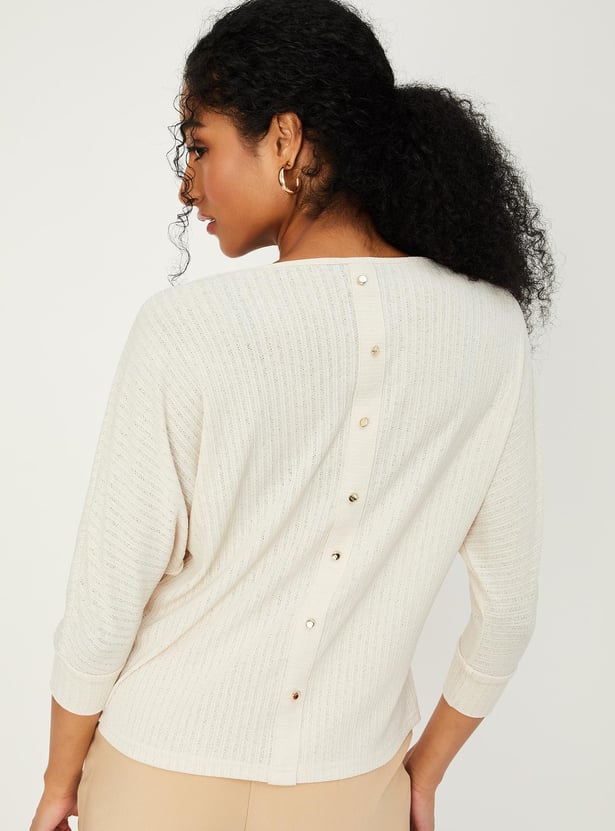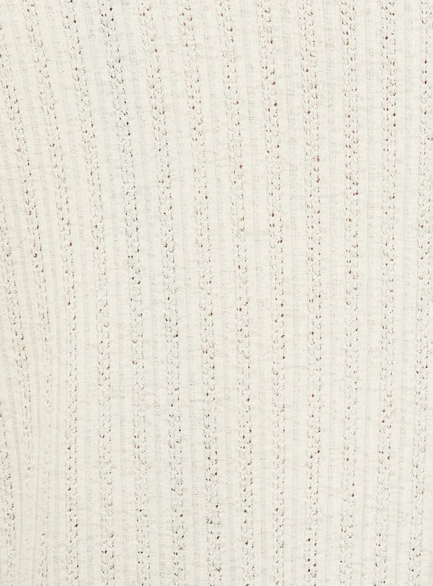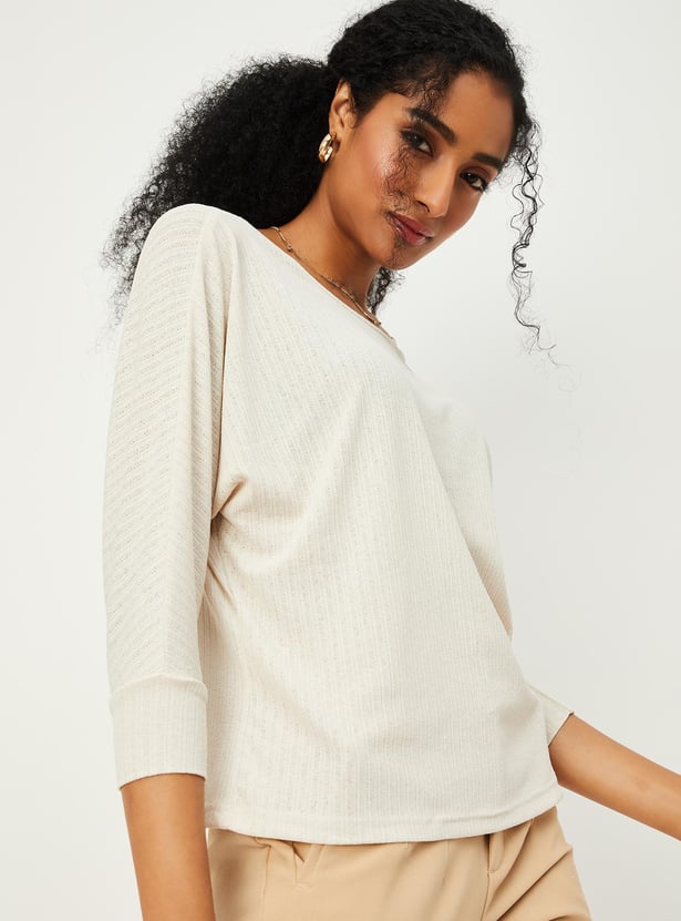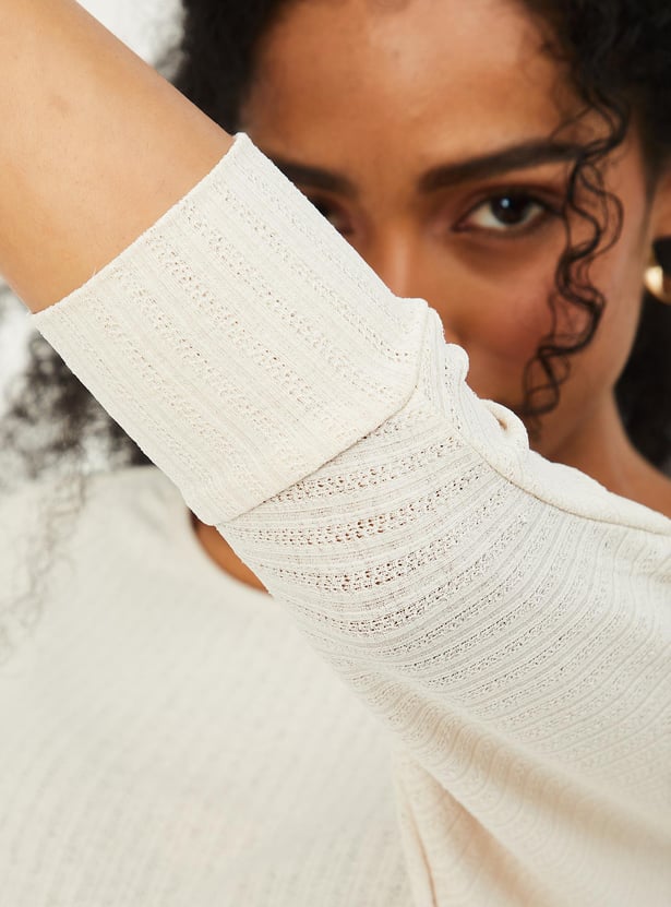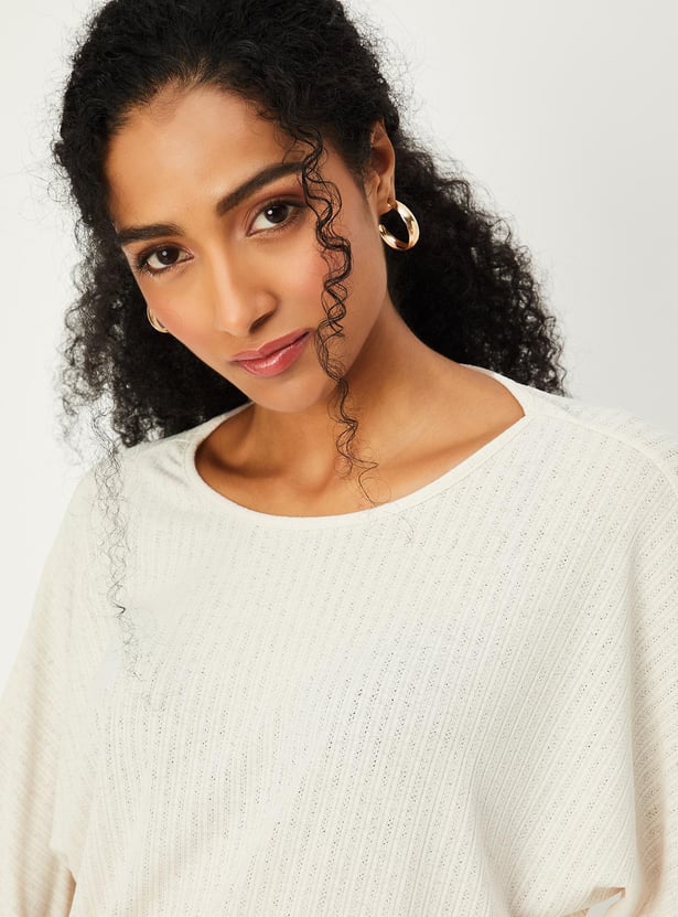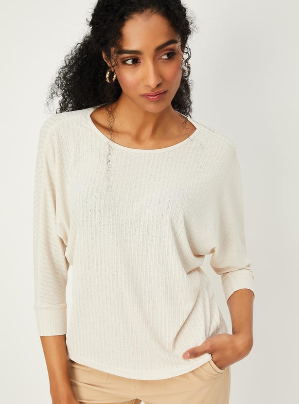 Switch up your style by adding this top to your casual collection. Designed with a round neck, full sleeves and ribbed surface.