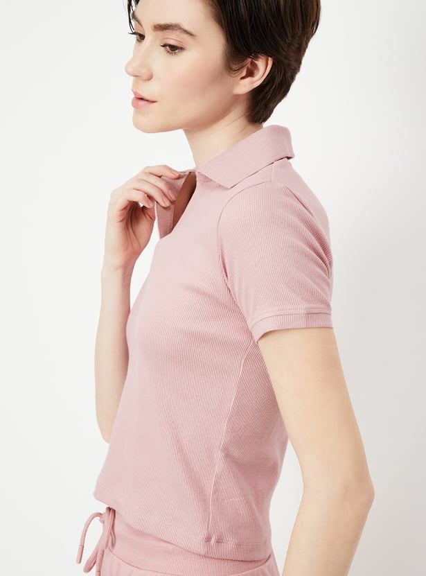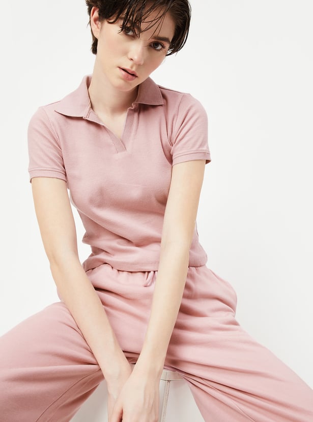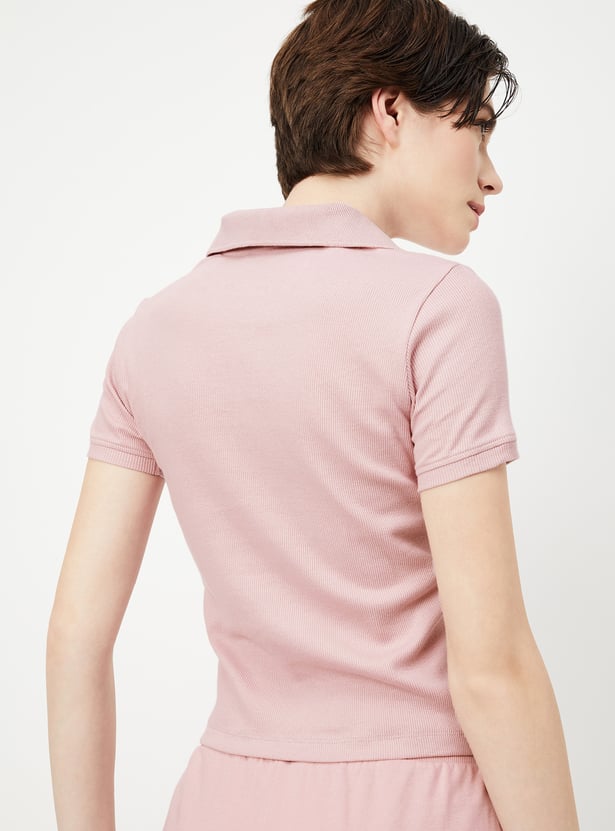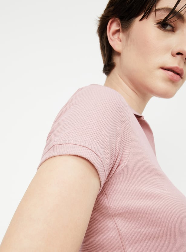 Elevate your street style with this polo T-shirt, featuring a ribbed design and a classic Johnny collar. The half sleeves enhance its trendy yet comfortable vibe, making it a versatile pick for casual outings. Model Size :