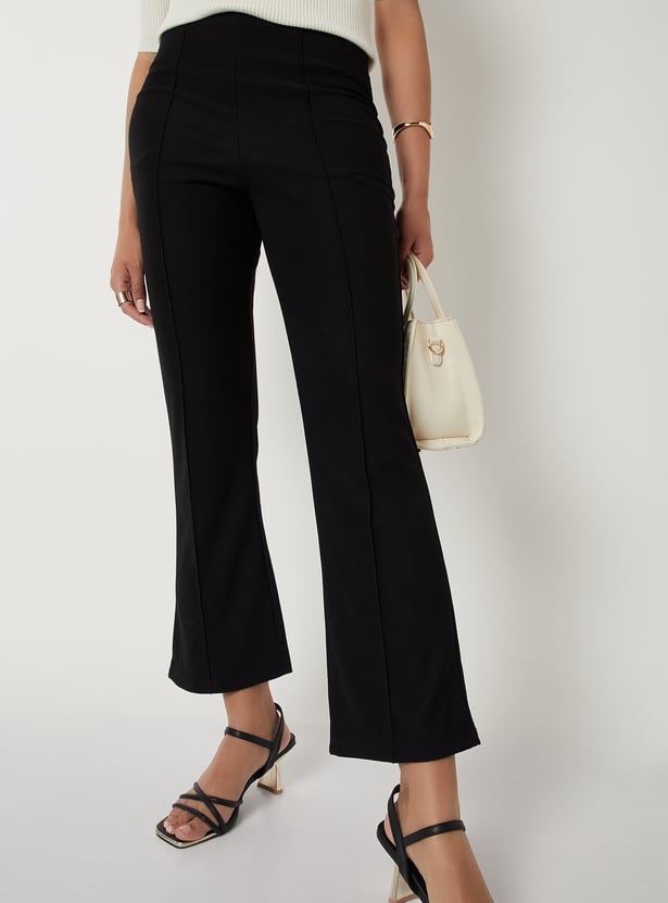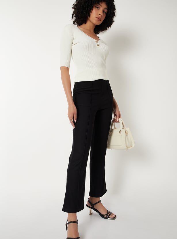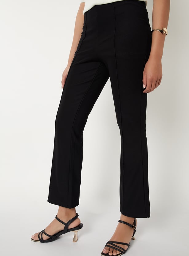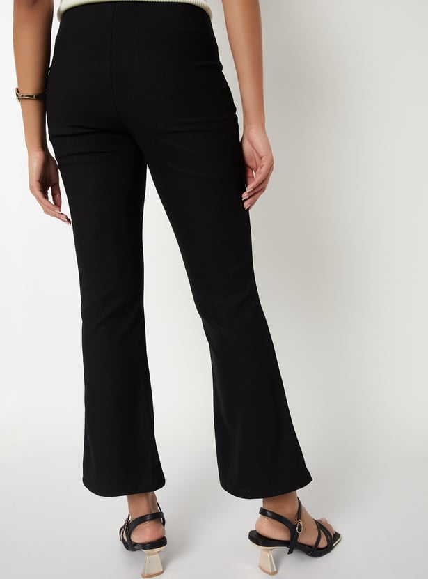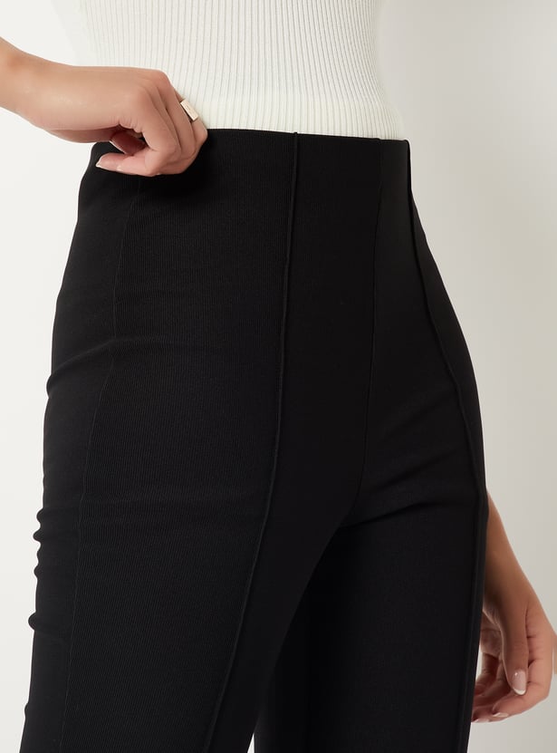 Step into style with these chic ribbed trousers. Designed to flatter every figure, they feature a soft ribbed texture, comfy elastic waistband, and flared hems for effortless movement. Perfect for casual days or dressed-up nights.