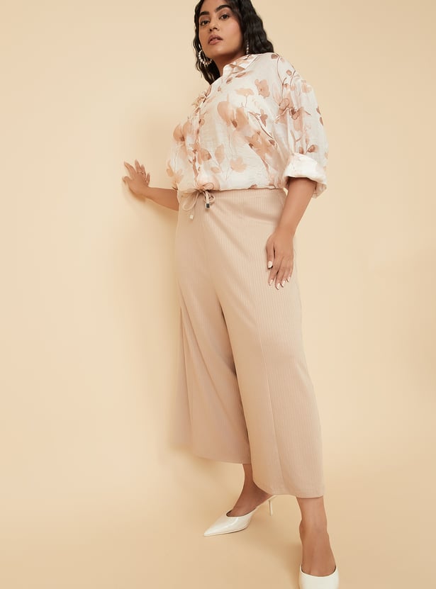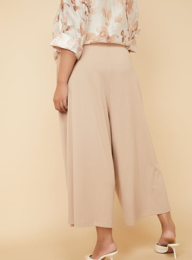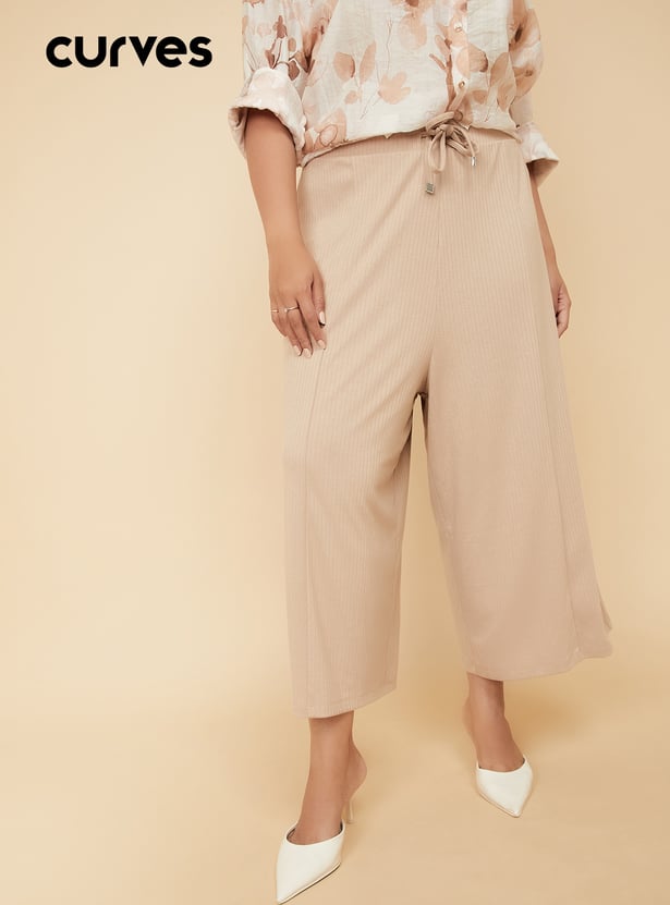 Elevate your casual style with these trendy ribbed culottes. Featuring a crop length, elasticated waist, and drawstring closure, they offer both comfort and a flattering fit. The relaxed, wide-leg design adds a chic, laid-back vibe to your look. Model Size :