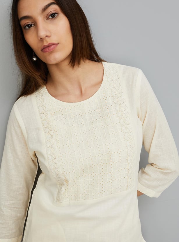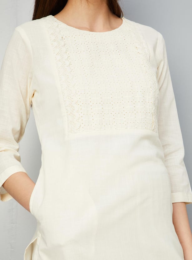 Women Schiffli Yoke Kurta with Pocket
