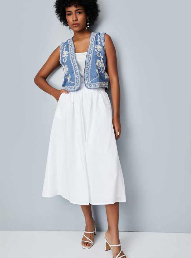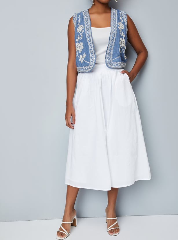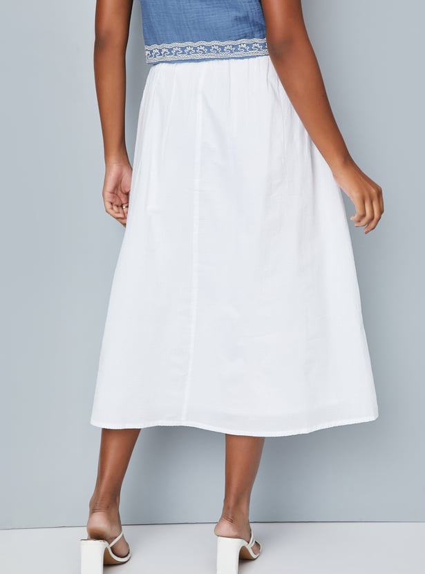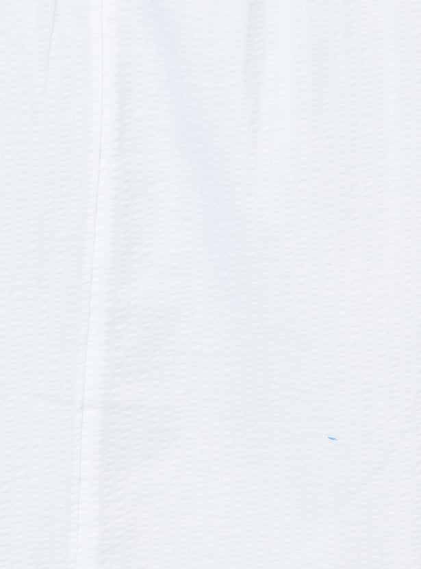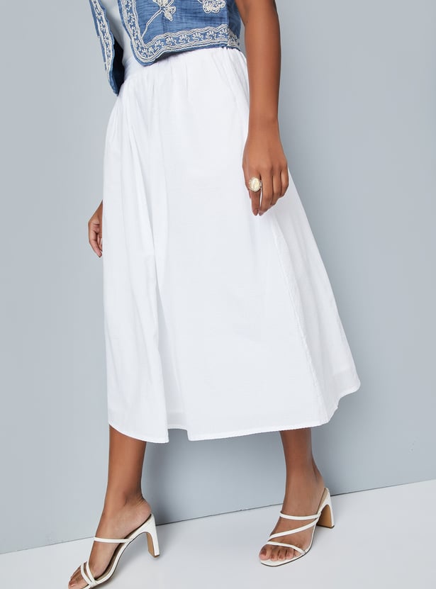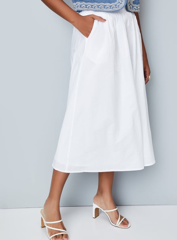Elevate your style effortlessly with this chic casual skirt. Featuring a seersucker surface, an elasticated waist for a comfortable fit, and a mid-length A-line silhouette that complements your figure, it exudes casual elegance.