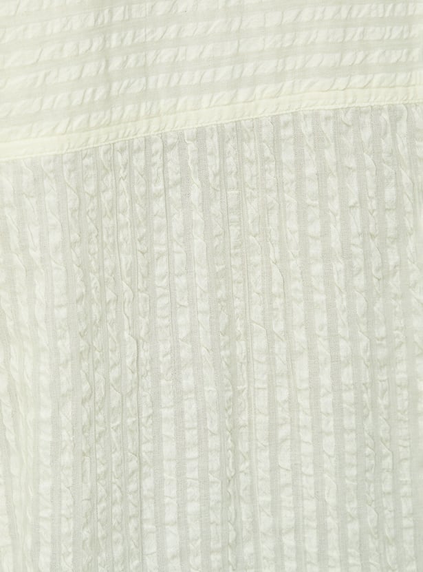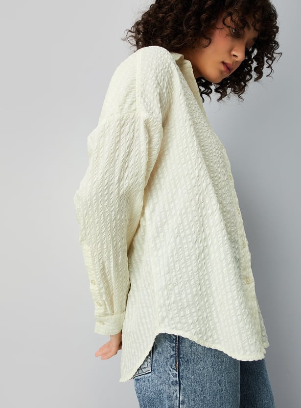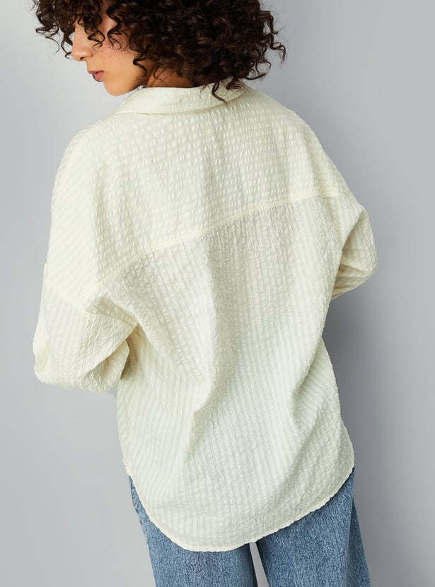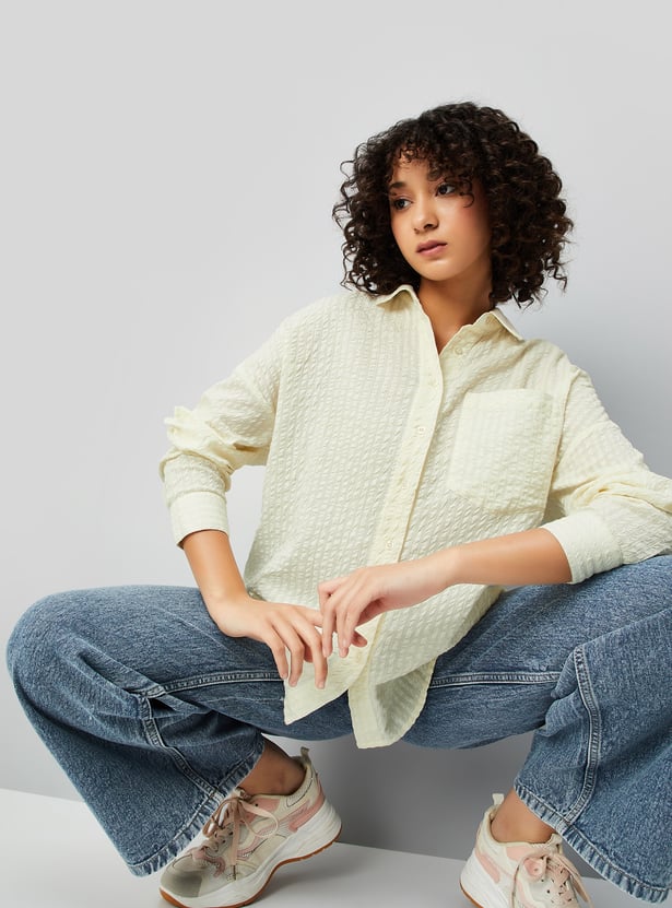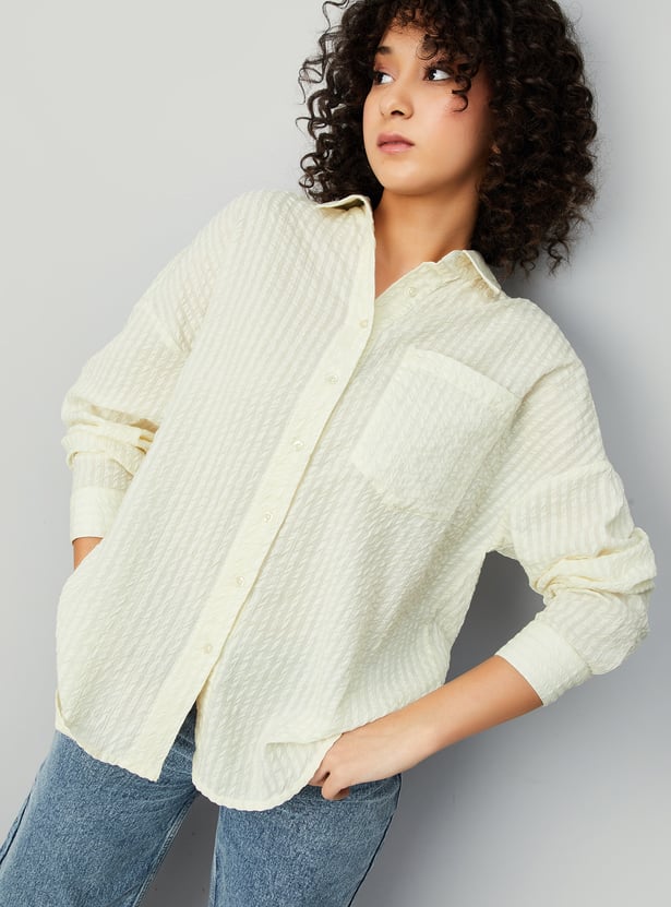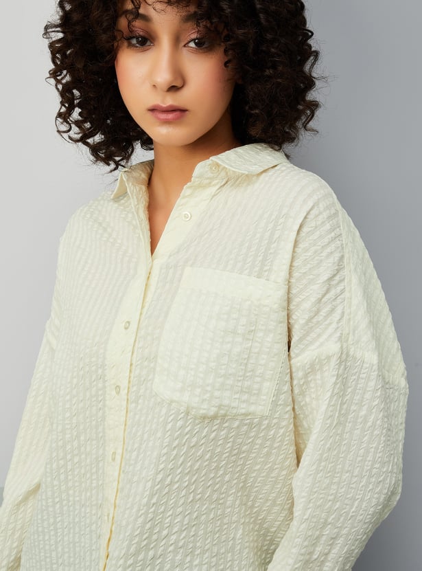 Upgrade your wardrobe with this seersucker shirt. Featuring a spread collar, full sleeves, a button placket, a patch pocket, and a curved hem, it combines classic design with modern comfort for a stylish, everyday look.