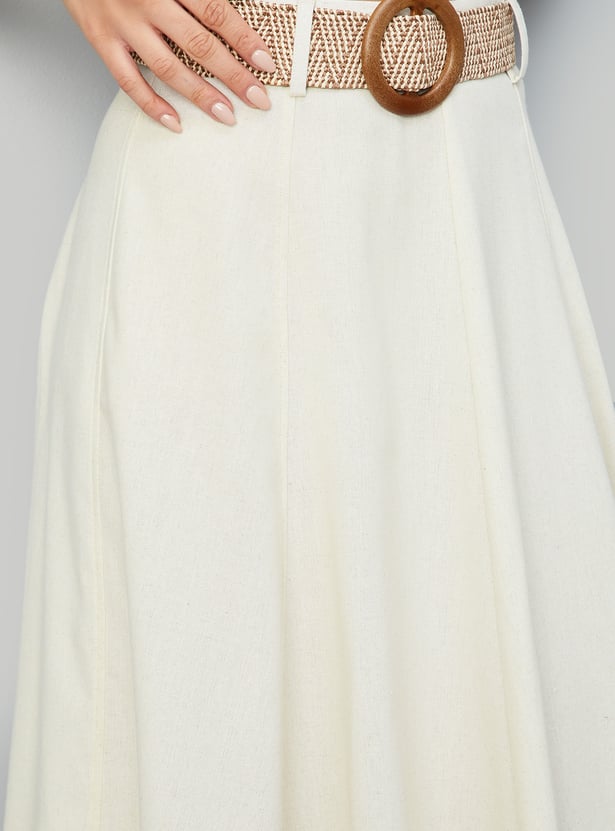 Women Solid A-line Belted skirt