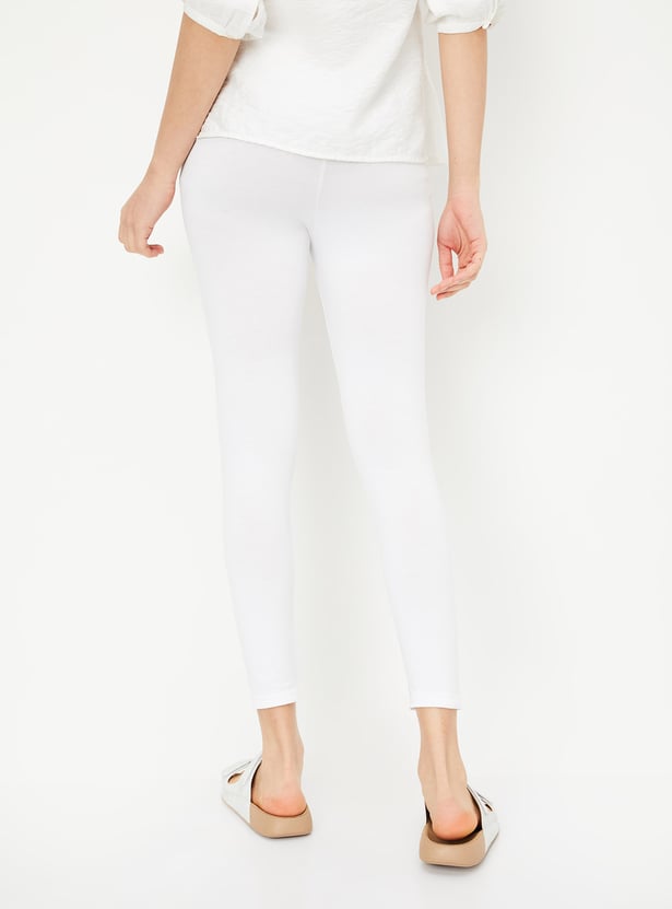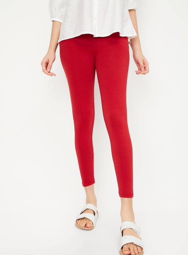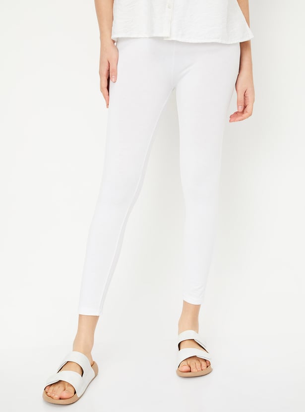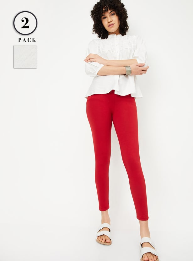 Elevate your wardrobe with these stylish ankle-length leggings, featuring a solid surface and an elasticated waistline for a comfortable fit. This pack of two ensures you have the perfect staples for any casual ensemble.