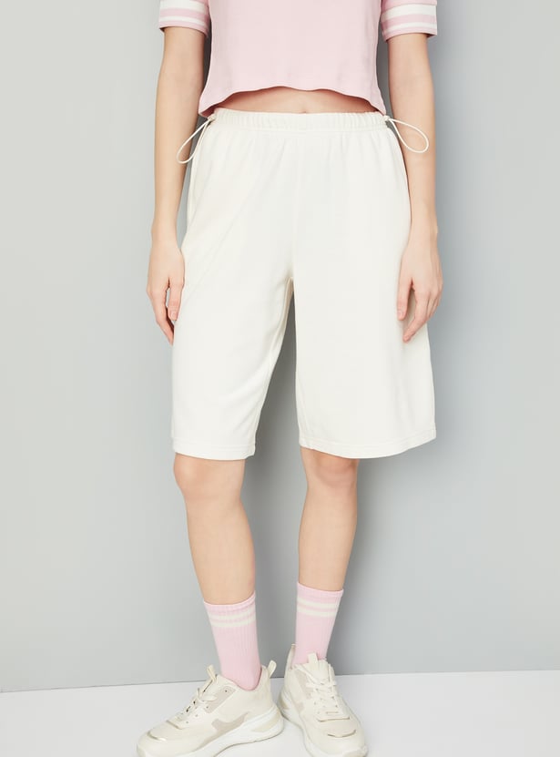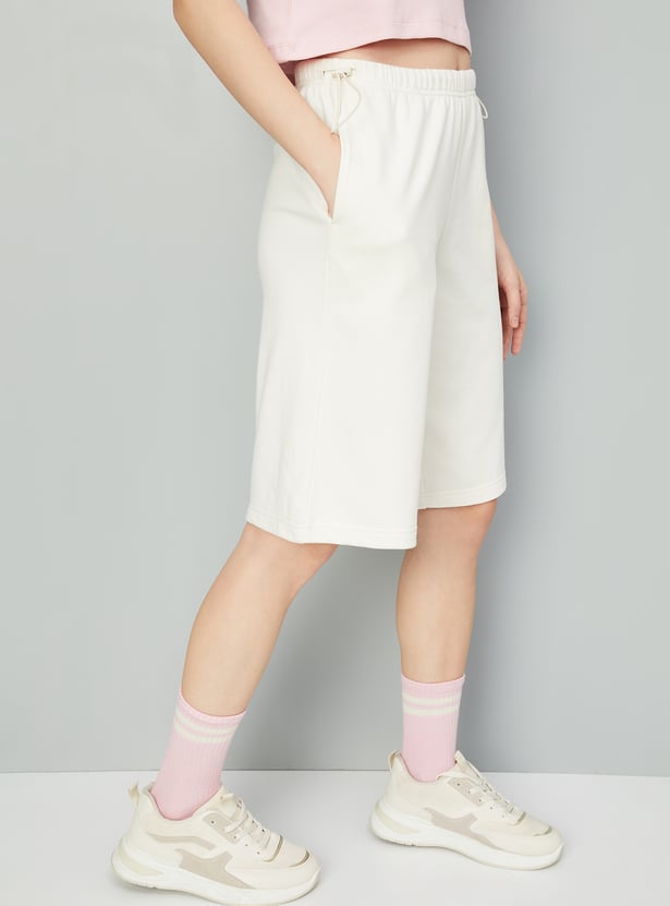 Elevate your athleisure game with these solid Bermuda shorts. Designed for both comfort and style, they feature drawcords at the waistband for a customizable fit and pockets for added practicality. Perfect for lounging or active days, these shorts seamlessly blend functionality with a chic, sporty look.