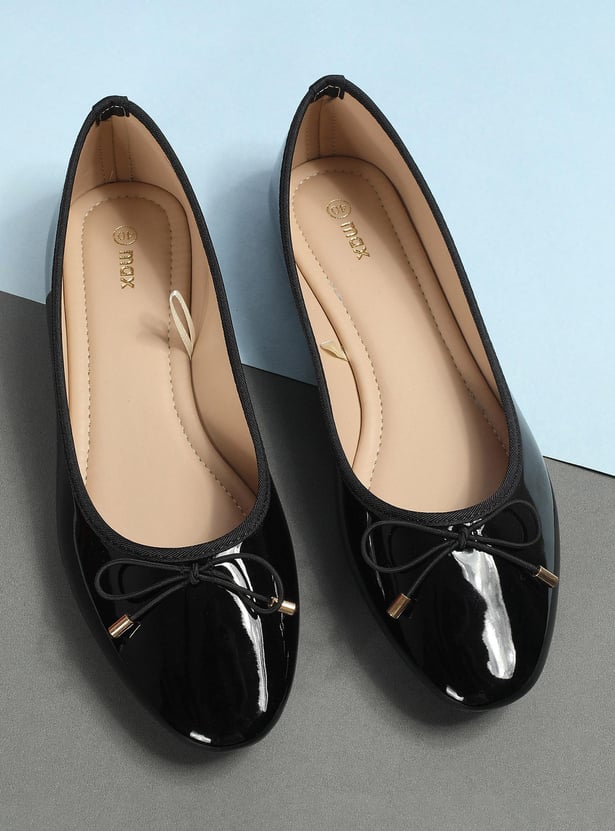 Walk in style with these fashionable ballerinas. They showcase a solid design, a charming bow detail, and easy slip-on construction. The grooved soles ensure comfort for all-day wear, making these ballerinas a practical and stylish choice.