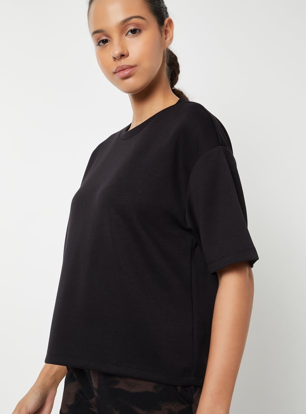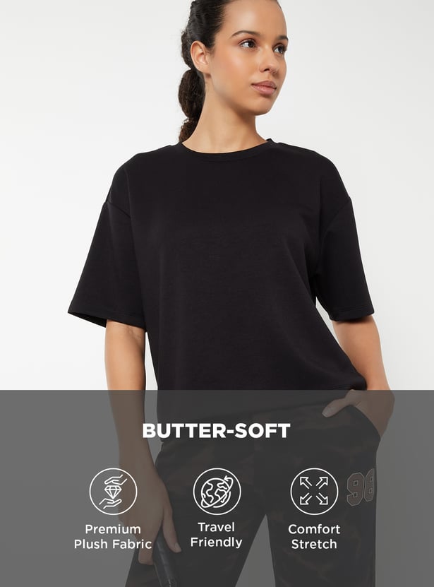 Women Solid Buttersoft Boxy Fit Sports T-shirt