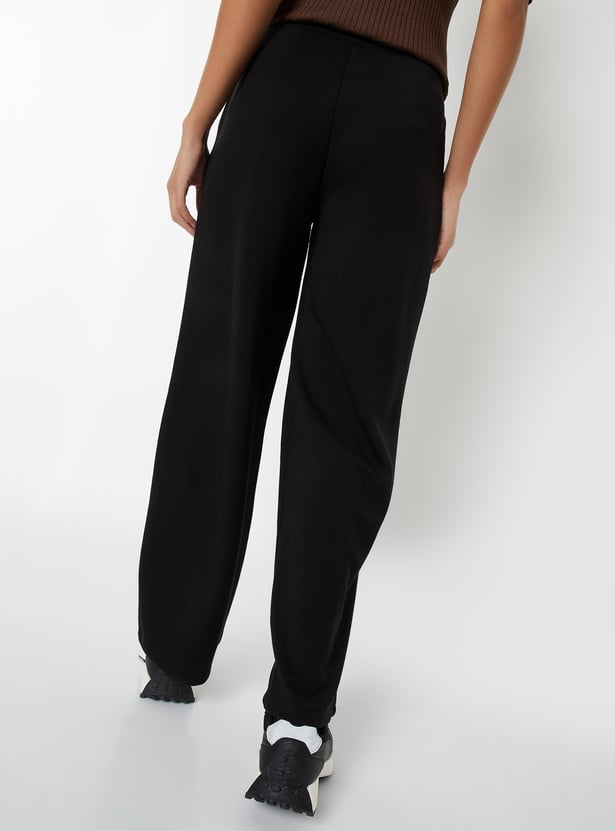 Stay comfy and on-trend with these solid wide leg sports track pants, featuring an elasticated waist and convenient side pockets. The relaxed silhouette offers ease of movement and all-day comfort. Model Size :