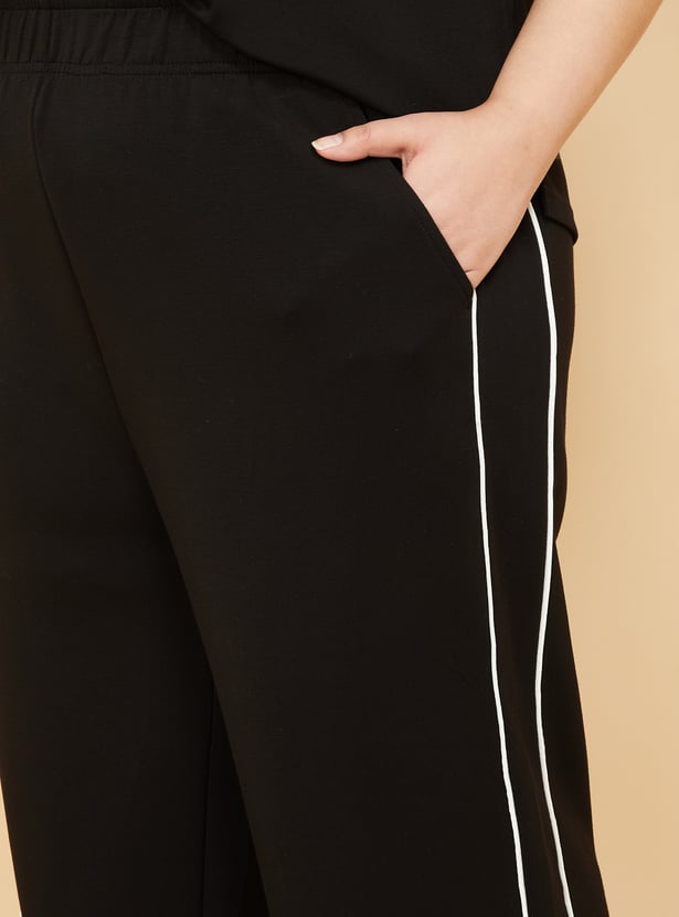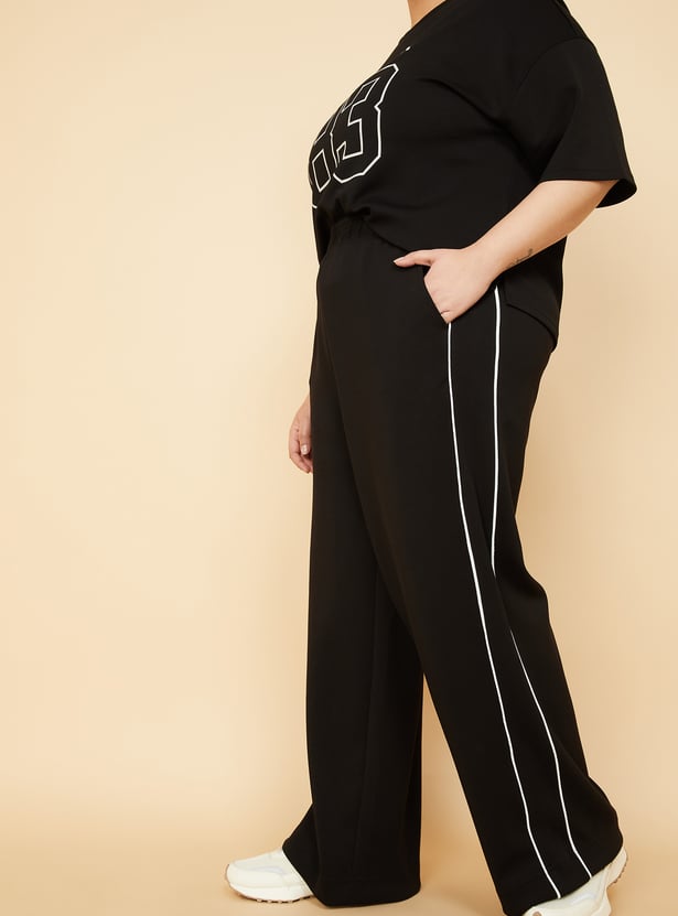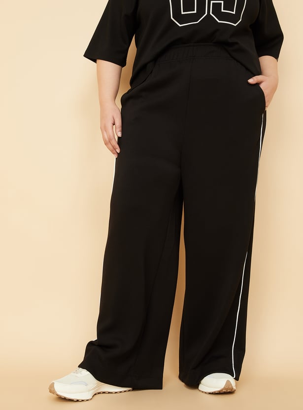 Experience ultimate comfort with these solid wide-leg, butter-soft sports track pants, featuring an elasticated waist and handy pockets. The relaxed fit is perfect for lounging or casual outings. Model Size :