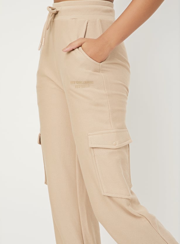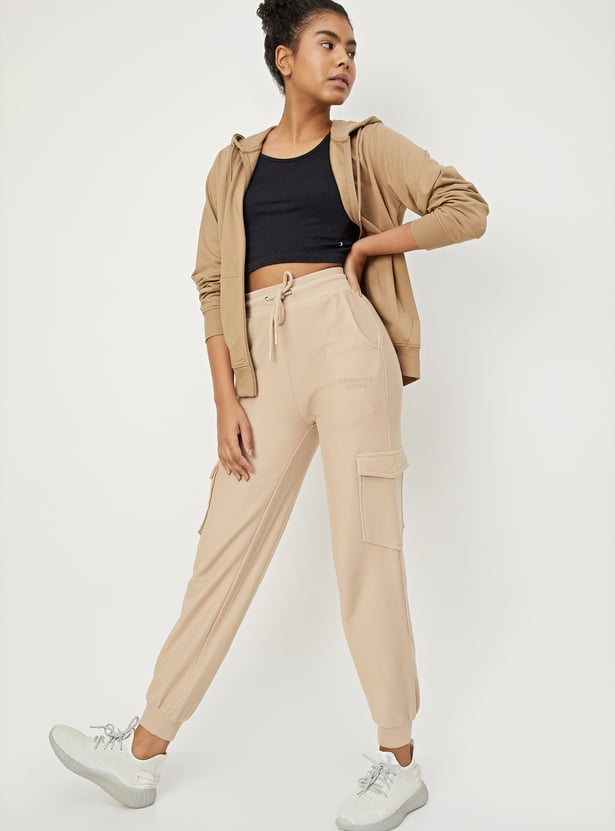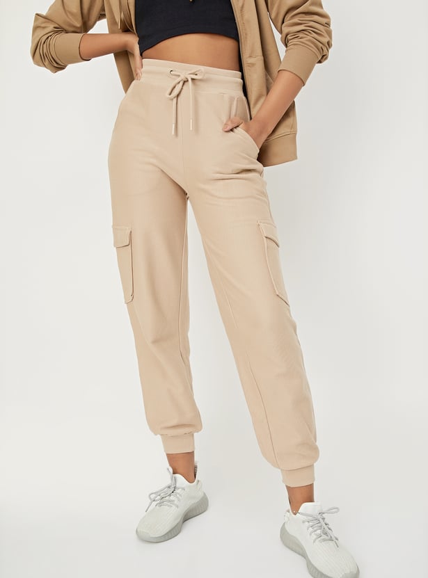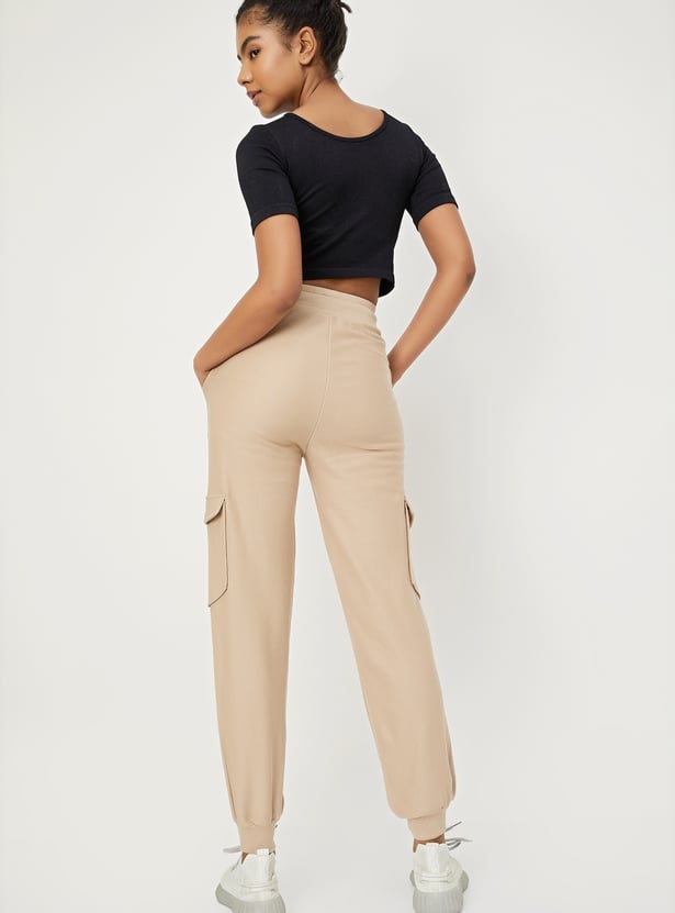 Elevate your casual attire with these essential joggers. Crafted in a versatile solid tone, they feature an elasticated waist, practical pockets, cargo pockets and a stylish cuffed hem.