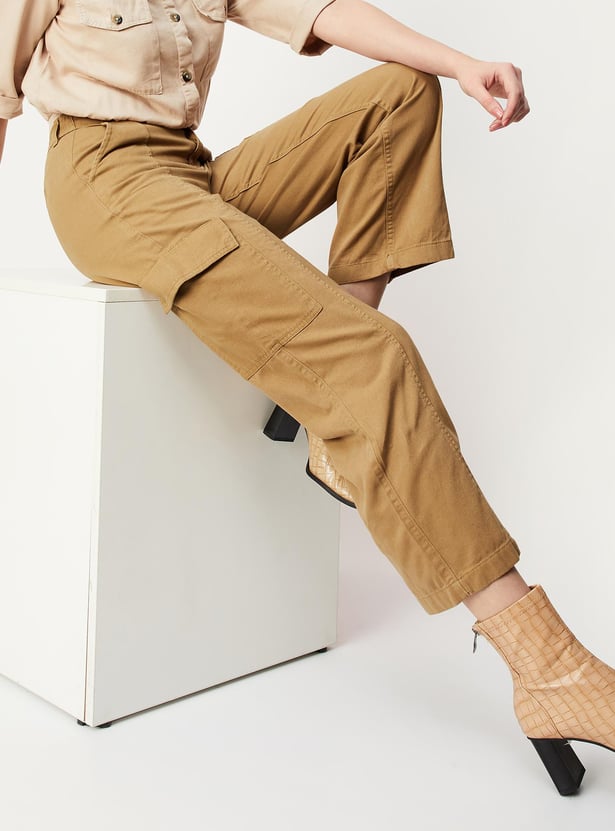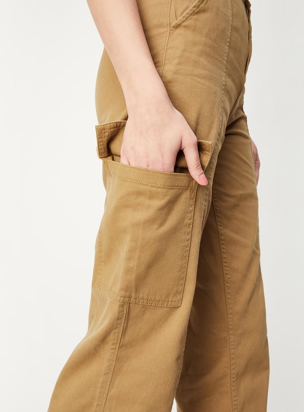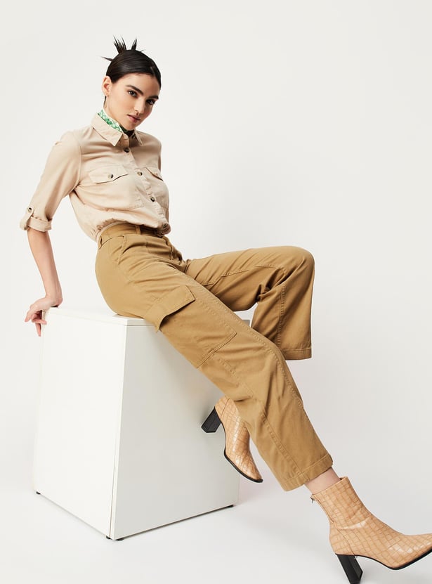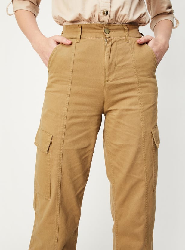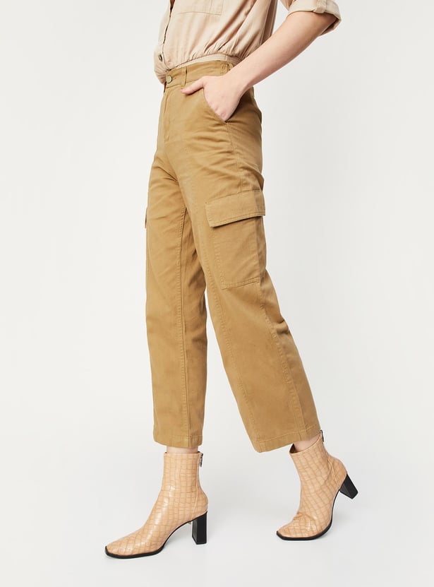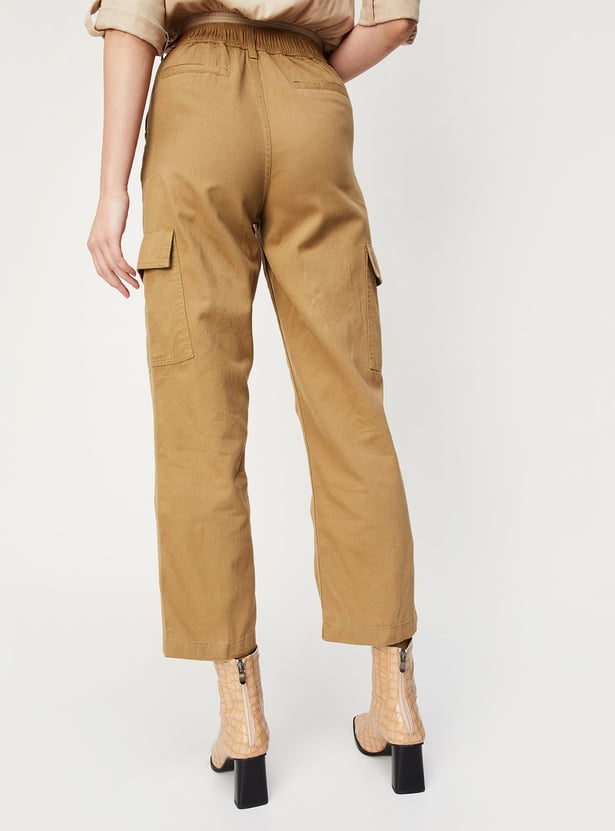 Up your street style with this pair of utility-inspired cargo pants. It is rendered in a solid tone with a belt loop waist, 4 convenient pockets, 2 cargo pockets, and a full-length profile. Team up this pair of cargo with a tee and sneakers to complete the look.