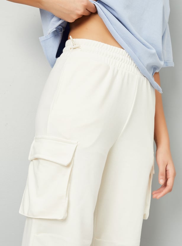 Get ready for the gym with these sporty parachute pants. The elasticated waist and drawstring ensure a customizable fit, while the relaxed fit offers comfort and freedom of movement. Tapered ankles and a drawcord hem add a modern touch, and multiple pockets provide practical storage. Perfect for workouts or active days.