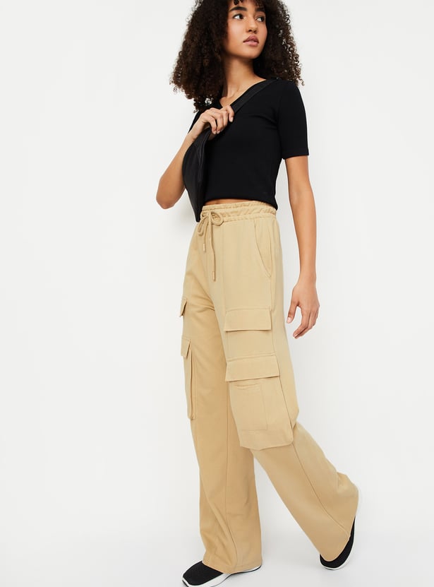 Stand out in style with this pair of track pants. Showcasing a solid tone, it features a drawstring waist for an adjustable fit and a wide leg profile for comfort. The multiple pockets, including cargo pockets, add a functional value. Model Size :