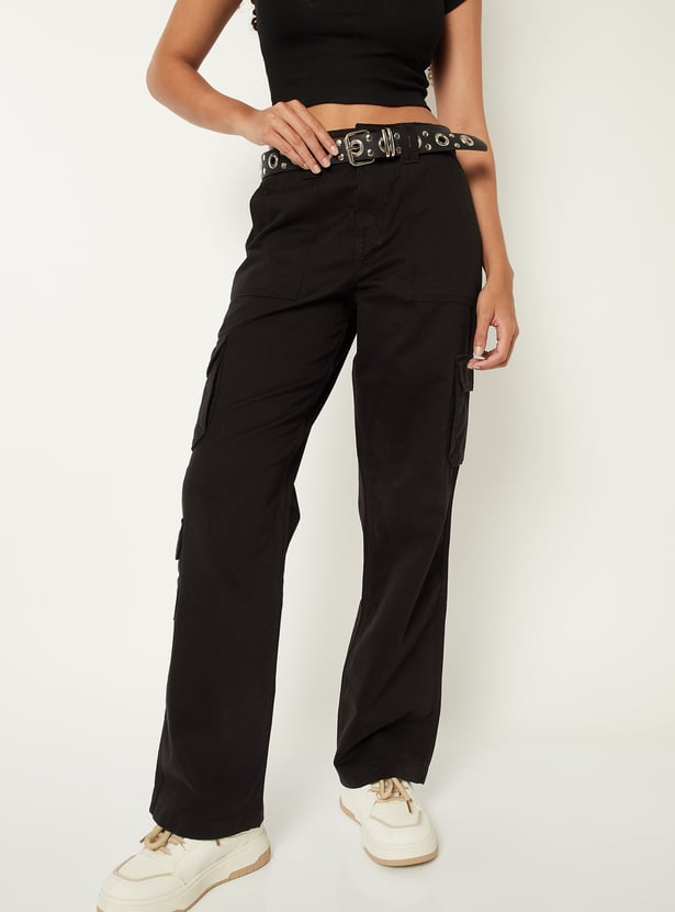 Women Solid Cargo Trousers