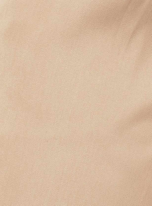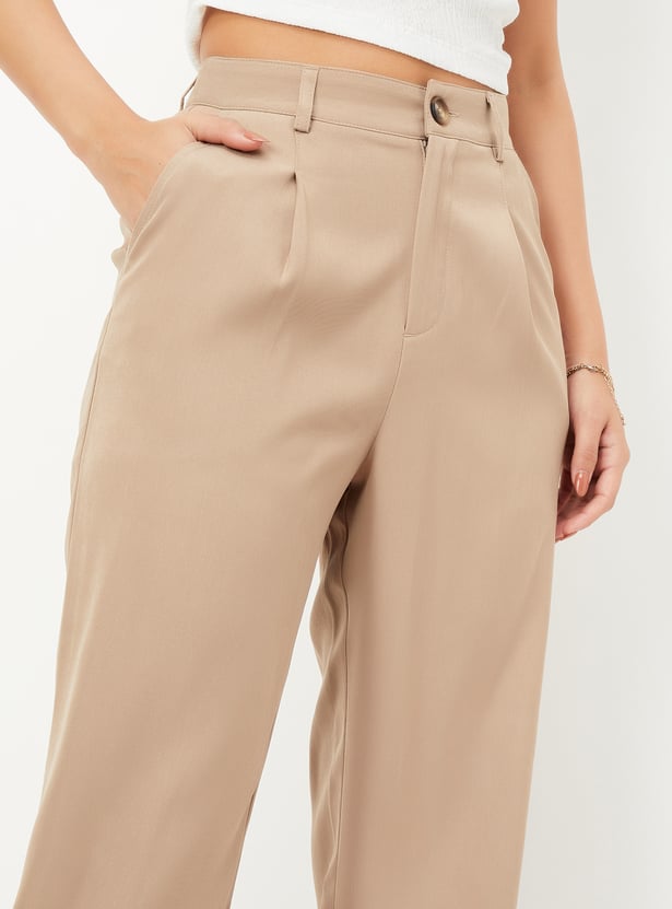 These solid carrot fit trousers offer a modern, flattering silhouette with a button closure for a secure fit. Designed with insert pockets and belt loops, they combine style and functionality for everyday wear. Perfect for dressing up or down, these trousers are a versatile addition to any wardrobe.