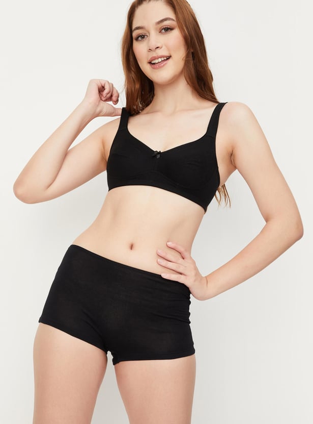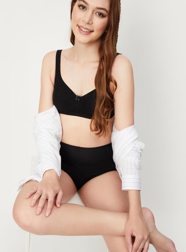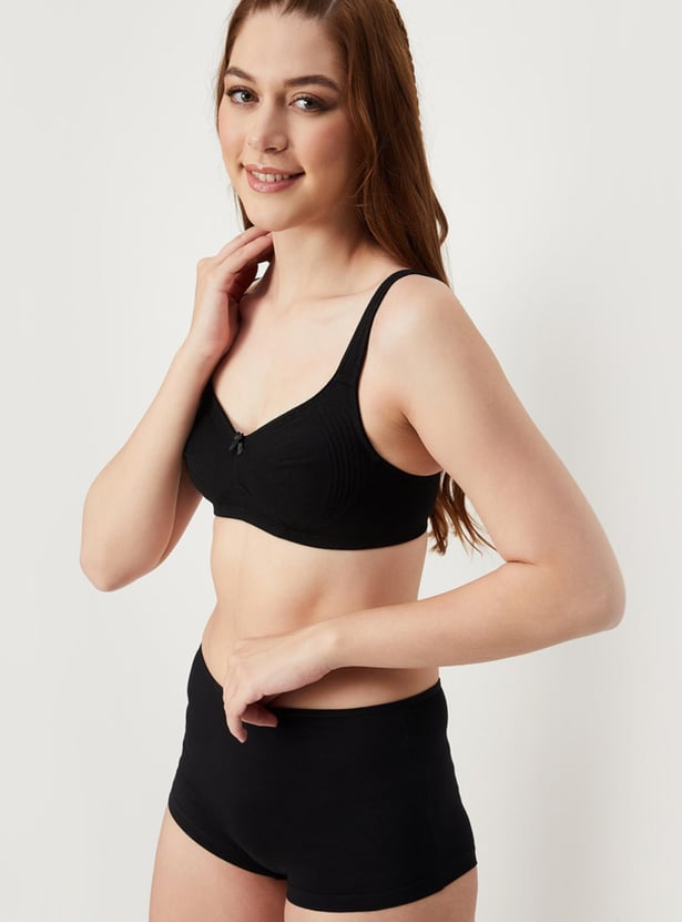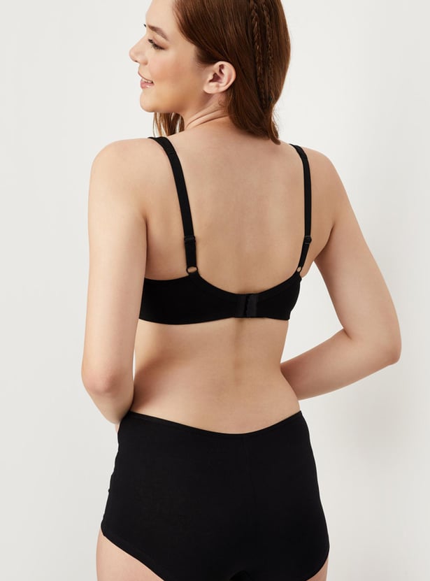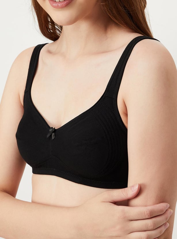 Comfort meets style in this bra rendered in a solid tone. It features shoulder straps, soft. encircled cups that offer full coverage, a non-wired design, and a back closure.