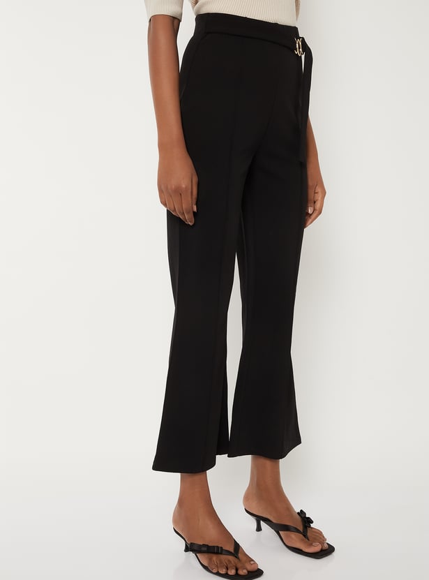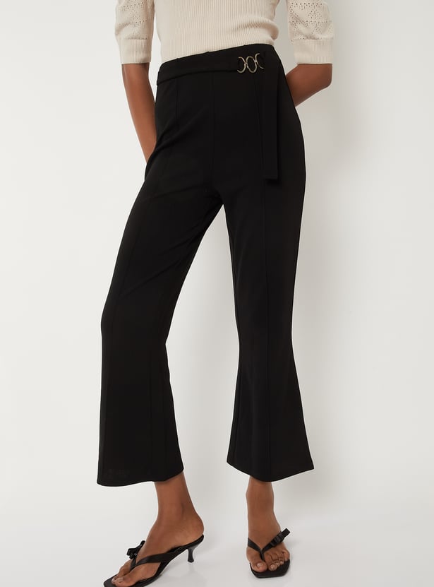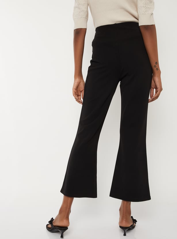 Women Solid Flared Crop Trousers