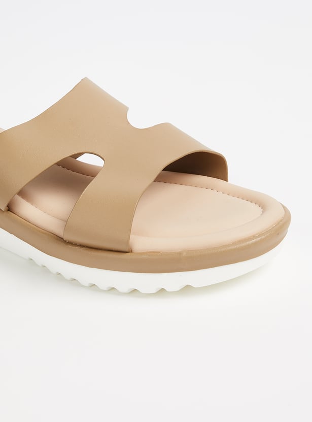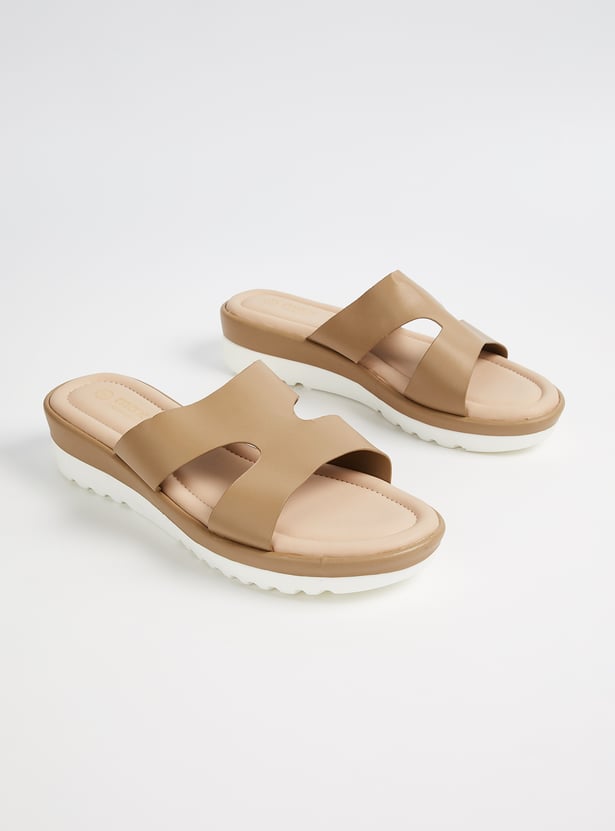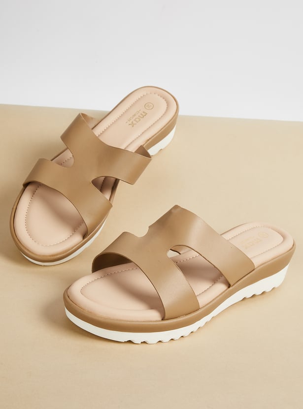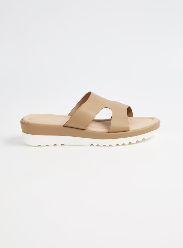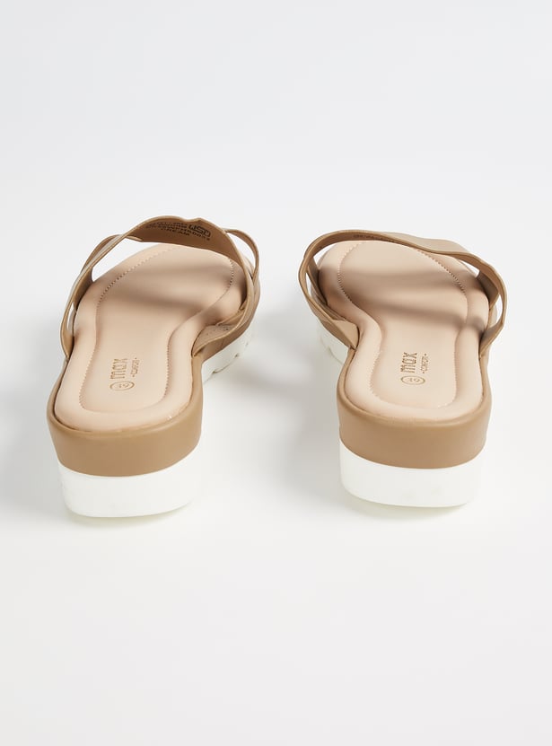 These solid slip-on flatforms feature, adding a touch of glamour to a simple silhouette. Designed for comfort and easy wear, they’re perfect for both casual and dressy occasions.
