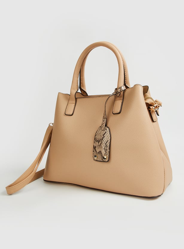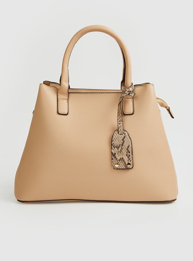This solid handheld bag is a versatile everyday essential. Designed with twin handles for easy carrying, it features a secure zip closure to keep belongings safe. An additional sling strap adds flexibility, allowing you to wear it crossbody or over the shoulder for hands-free convenience.