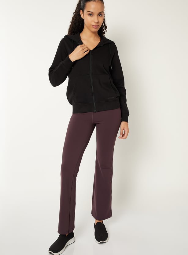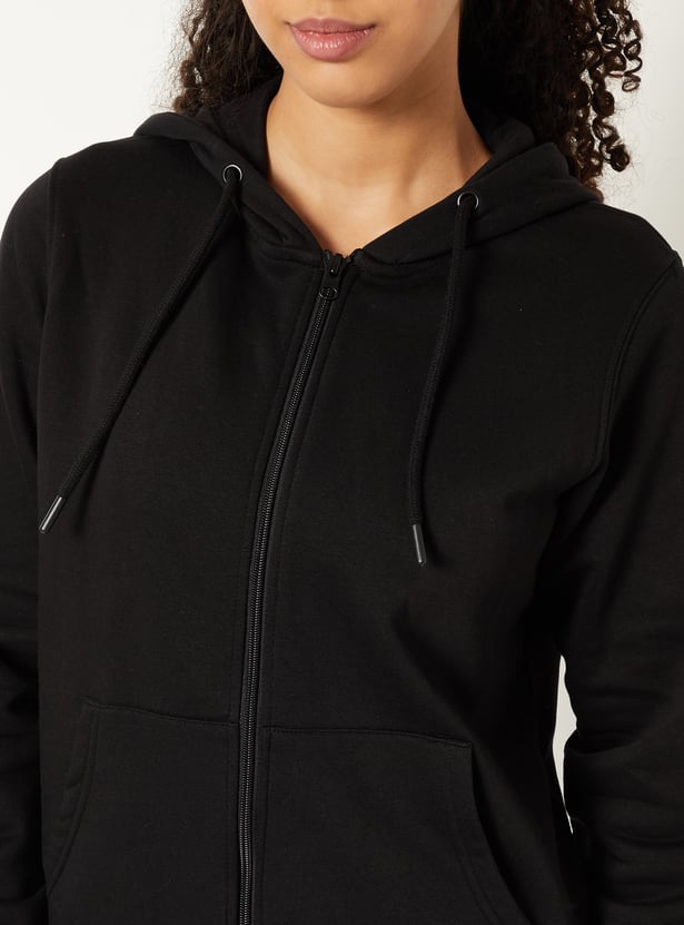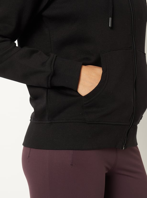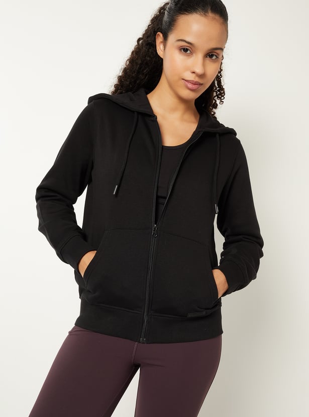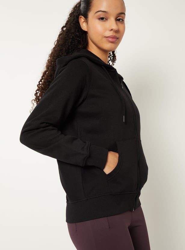 This sporty jacket combines function and style with its sleek zip closure, hooded neck, and full sleeves. Designed for gym or running, it features split kangaroo pockets for added convenience and warmth.