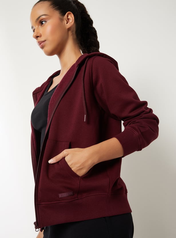 This sporty jacket combines function and style with its sleek zip closure, hooded neck, and full sleeves. Designed for gym or running, it features split kangaroo pockets for added convenience and warmth.