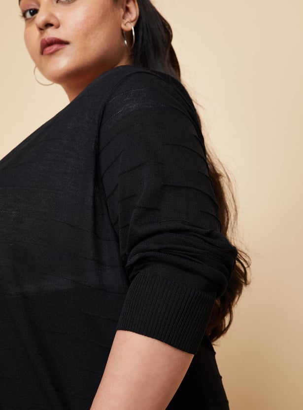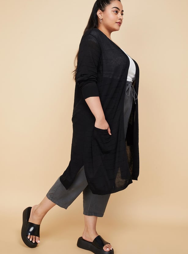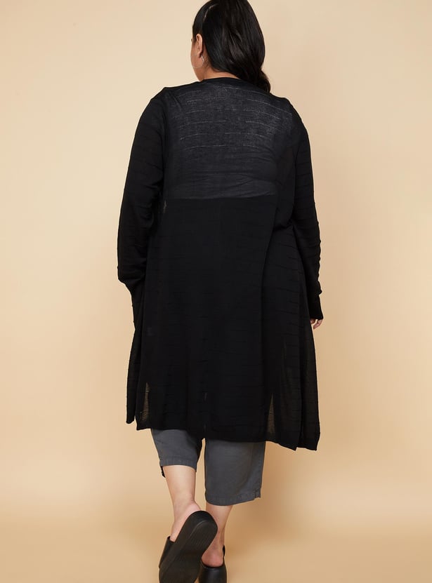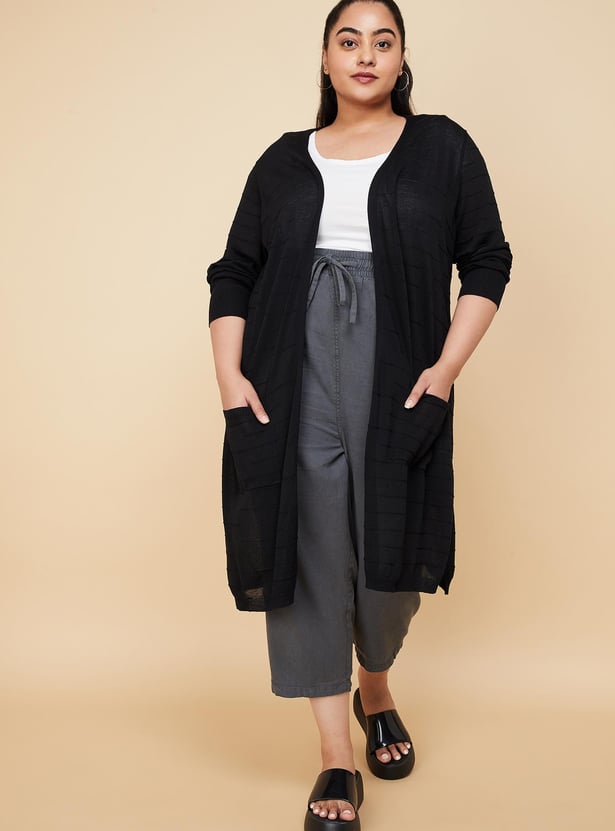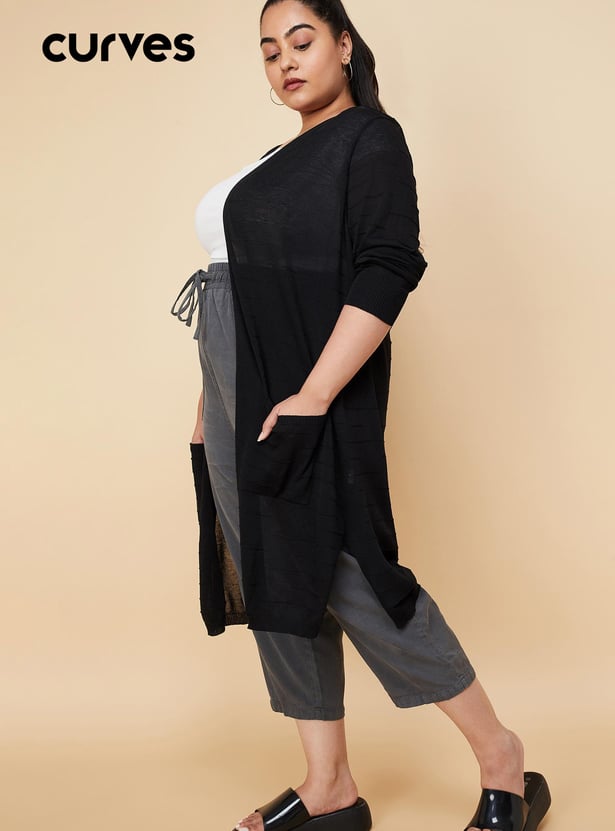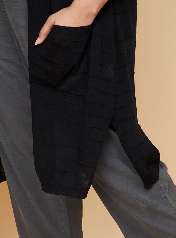 Elevate your style with this chic shrug. The front-open design, full sleeves, and handy pockets strike the perfect balance of comfort and sophistication.