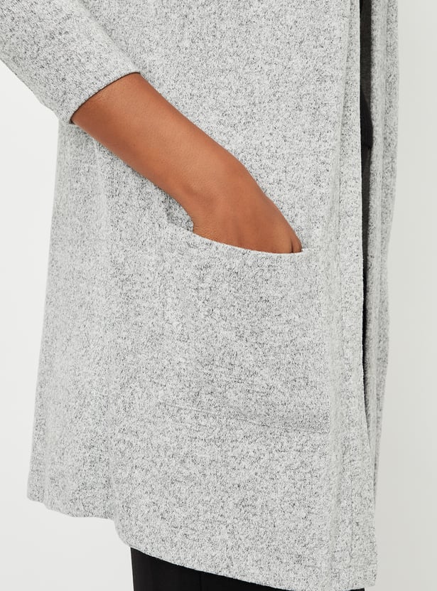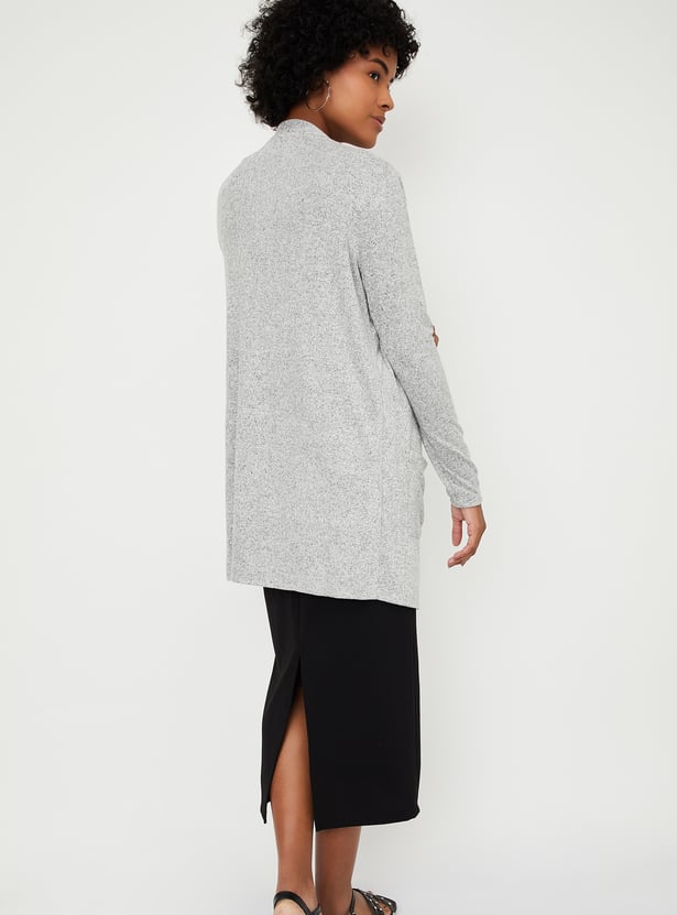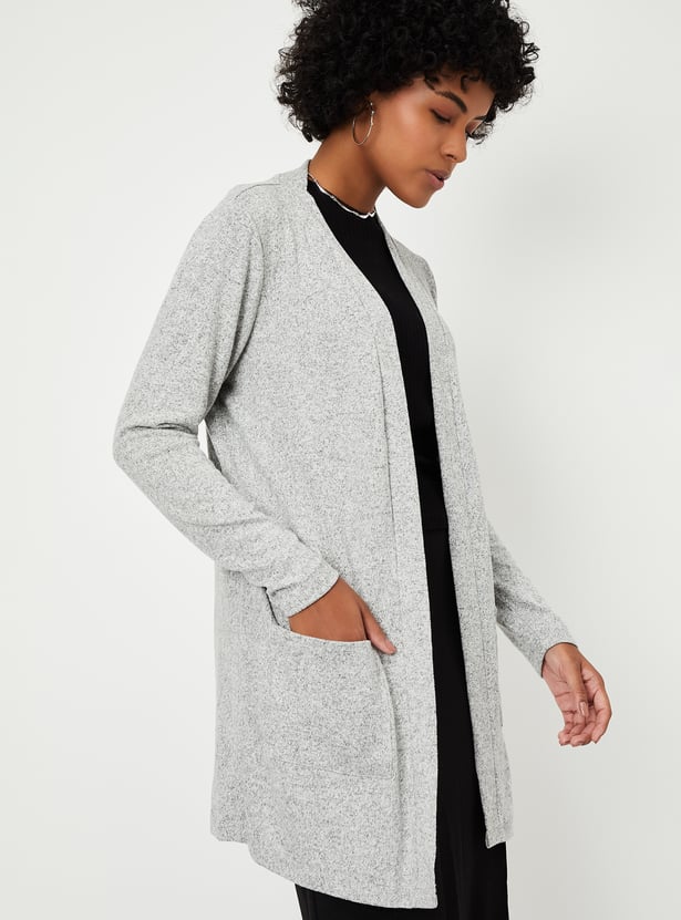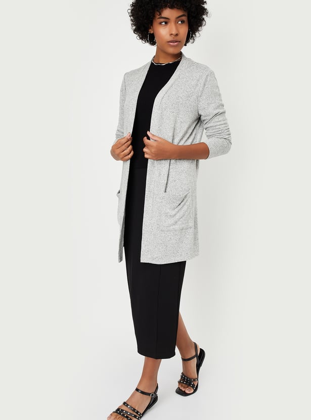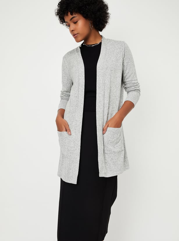 Elevate your style with this chic shrug. The front-open design, full sleeves, and handy pockets strike the perfect balance of comfort and sophistication.
