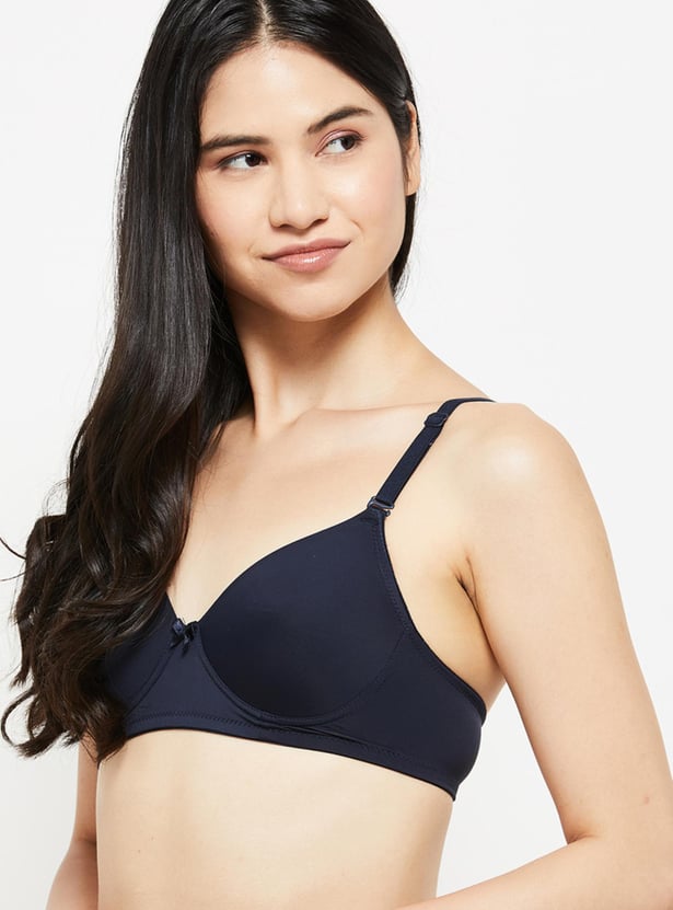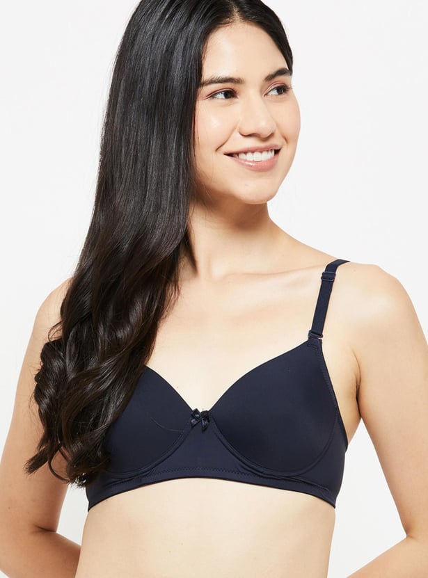 Designed with a solid surface this bra features padded construction and adjustable shoulder straps to keep you comfortable all day long.