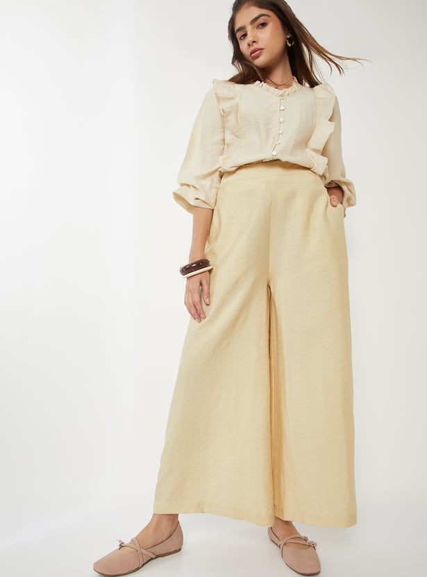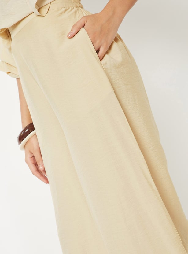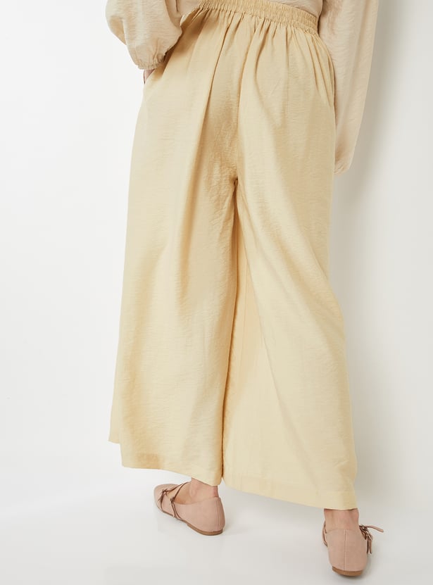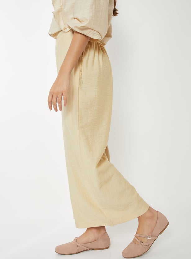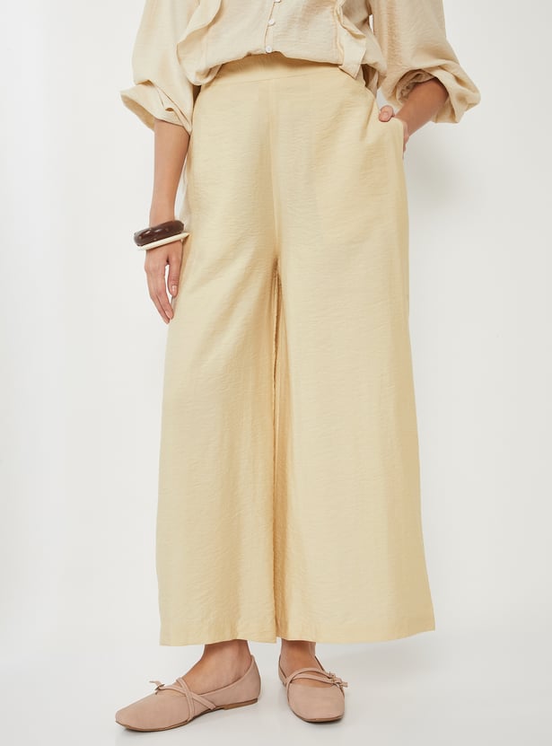 Comfortable and versatile, these solid palazzos feature an elasticated waist and practical pockets for everyday ease. The flowing silhouette makes them perfect for casual wear, work, or relaxed outings.