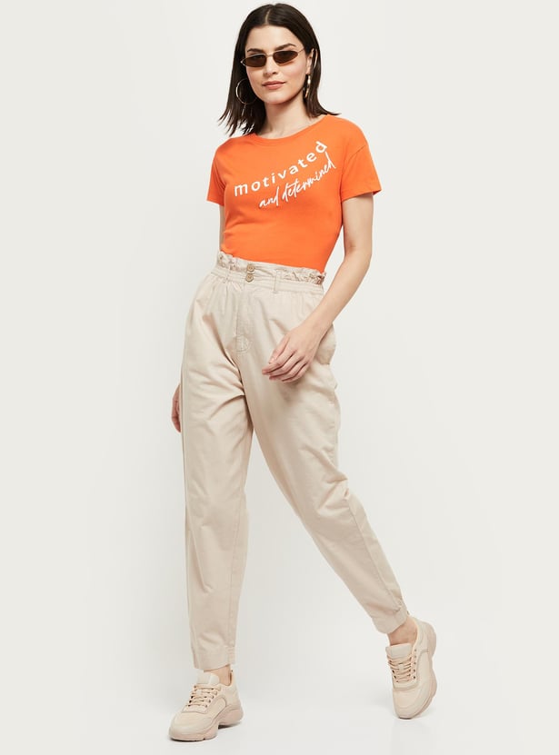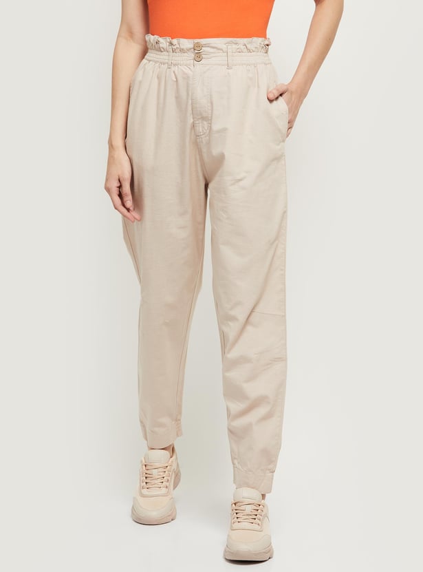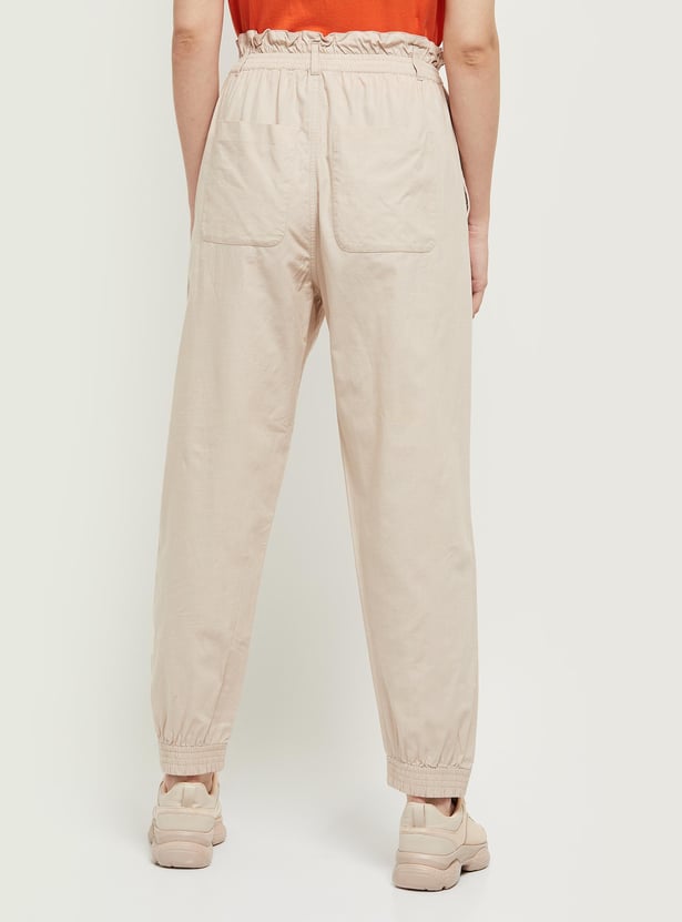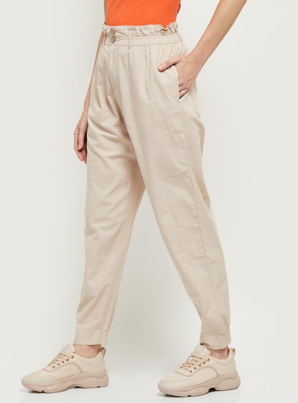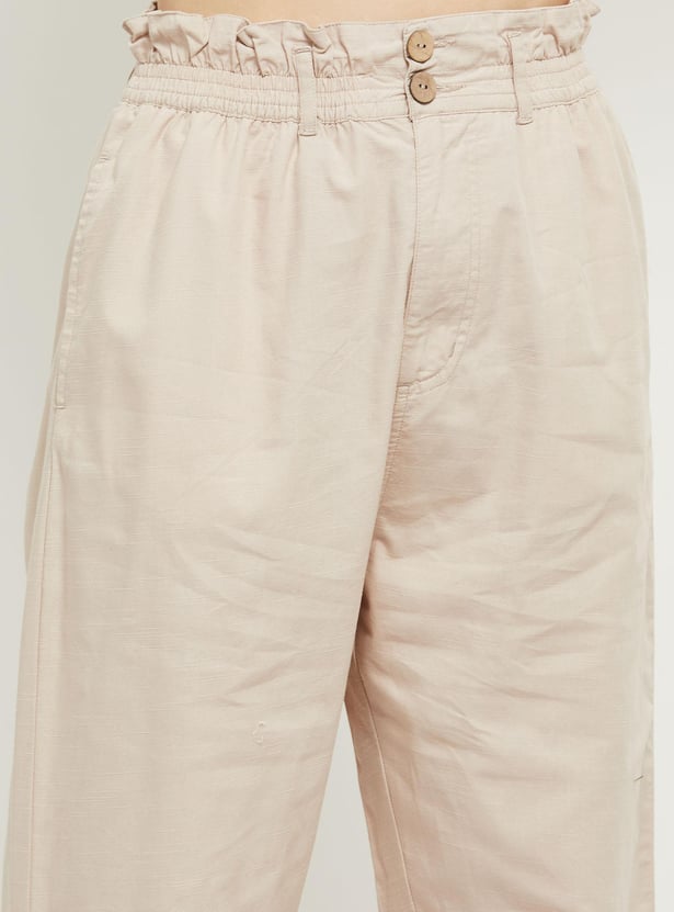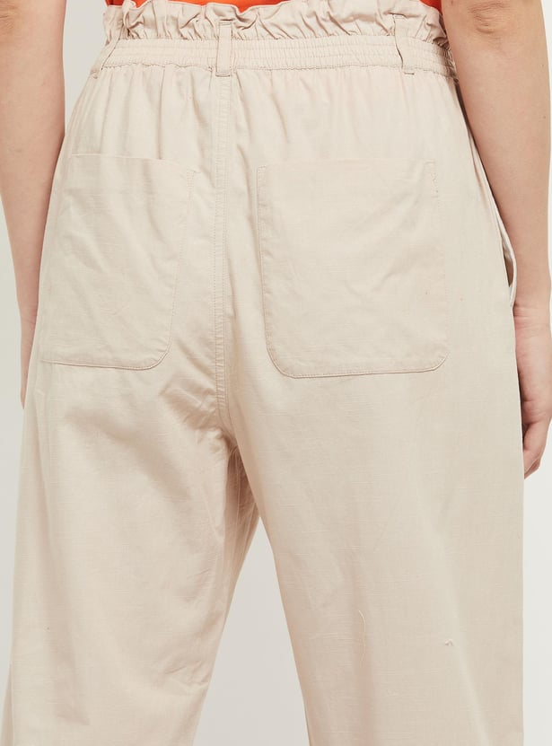 Women Solid Paperbag Trousers