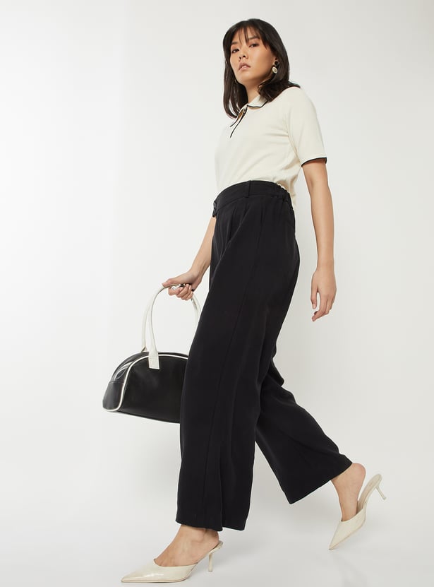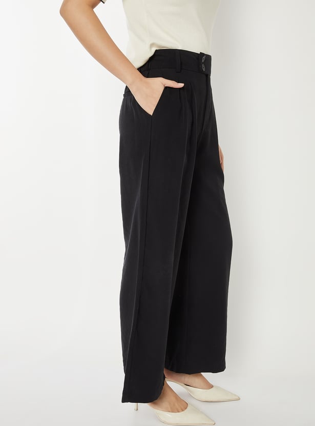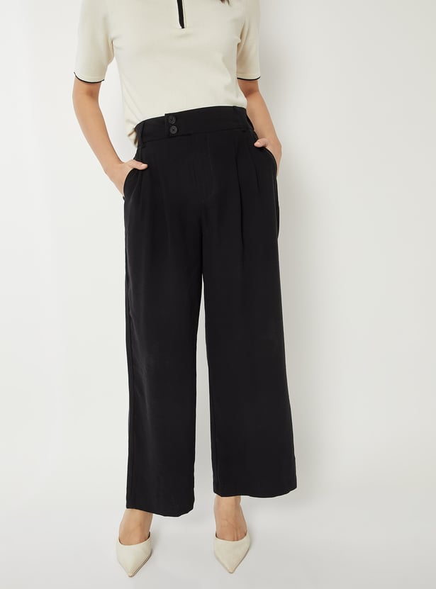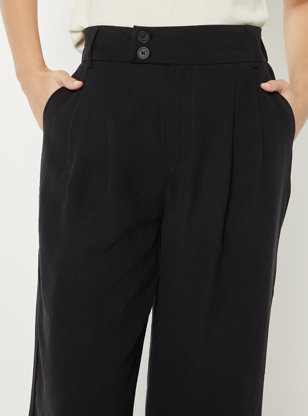 Women Solid Pleated Trousers