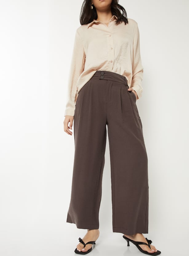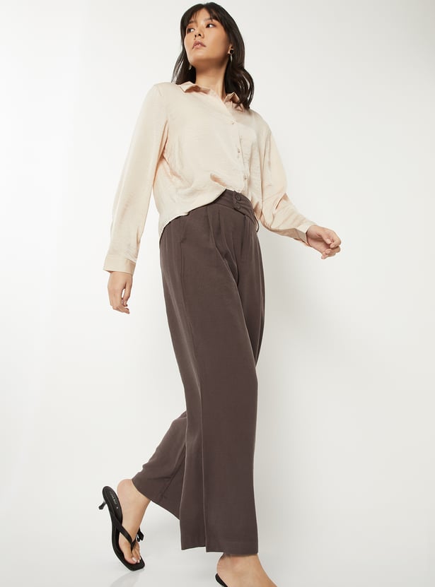 Women Solid Pleated Trousers