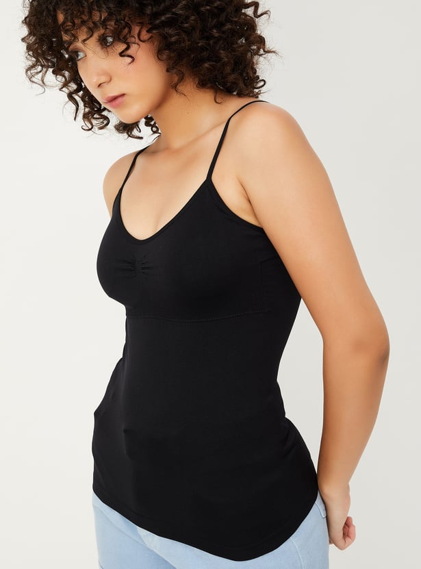 Perfect for a sleek, comfortable fit all day long, this camisole is a must-have basic. The spaghetti straps provide a delicate touch, while the solid tone ensures versatility for layering or wearing on its own. It's seamless design and built-in padding enhance support.