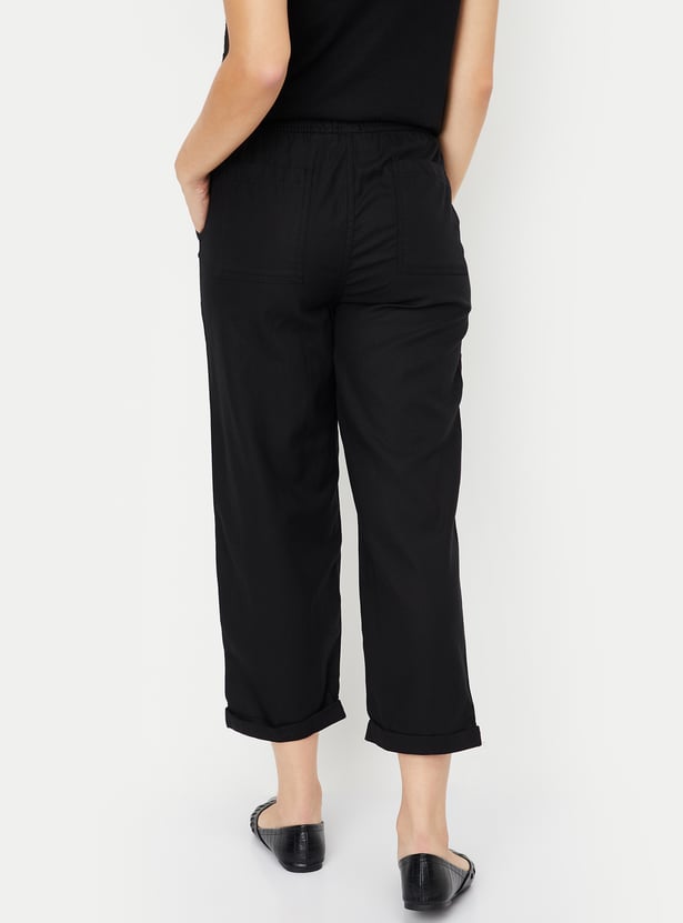 Women Solid Straight Fit Trousers