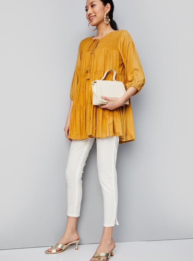 Lay the foundation for your basic wardrobe with this pair of straight pants. It has an elasticated waist, side pockets, and side slits at the hem.