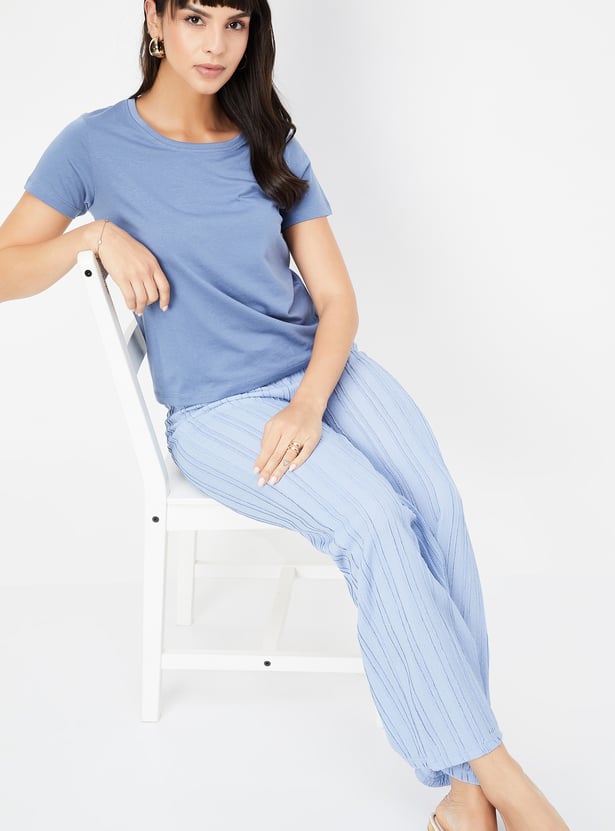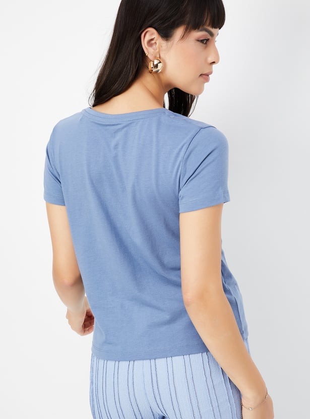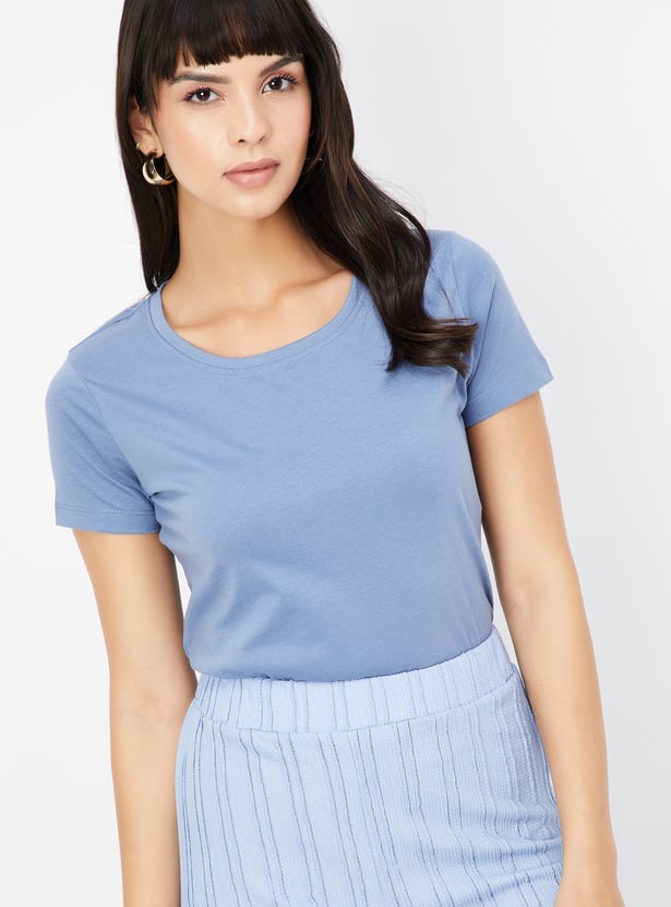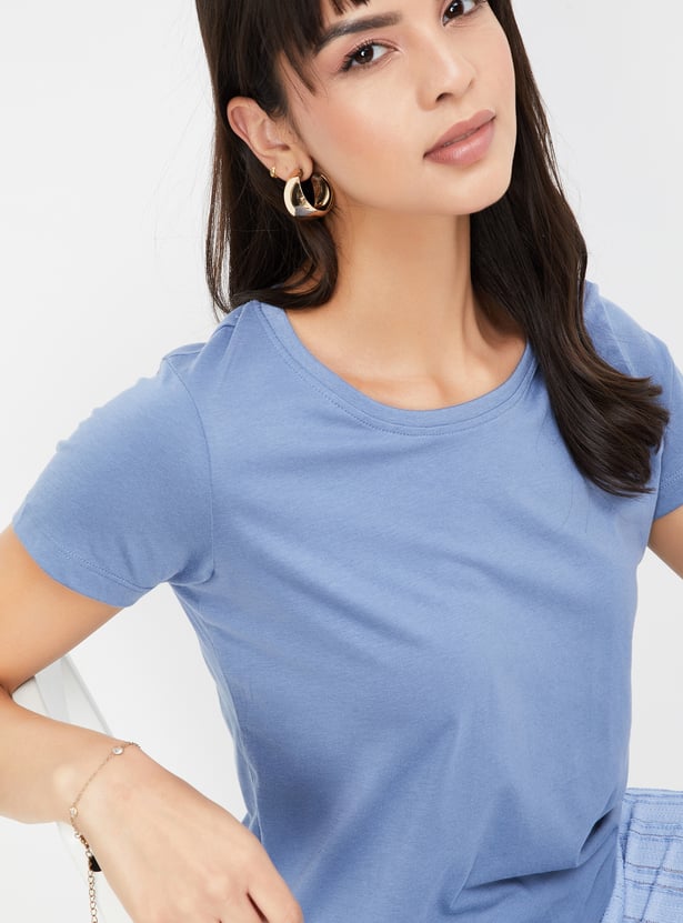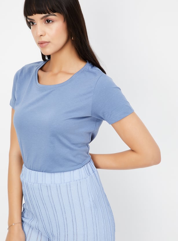 Build your casual wardrobe with this versatile T-shirt. It is rendered in a solid tone with a round neckline and short sleeves.