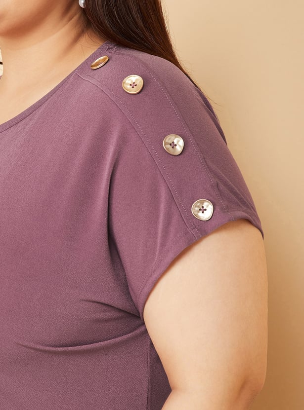 This solid extended sleeve top features a classic round neck and button detailing on the shoulder for a touch of understated style. Its regular fit and clean silhouette make it a versatile staple for everyday wear. Model Size :