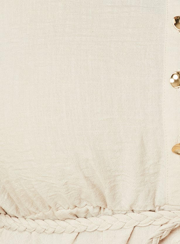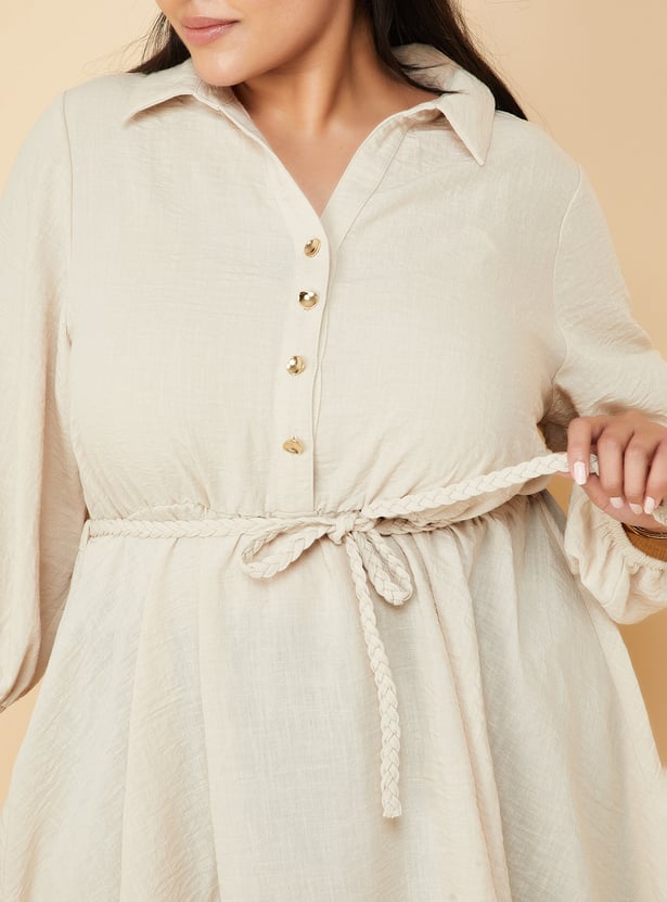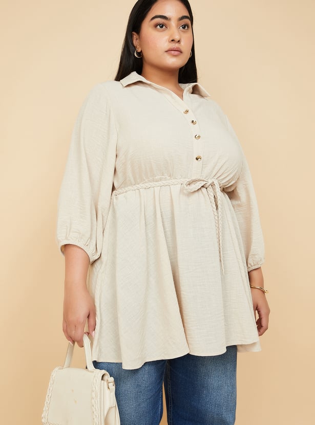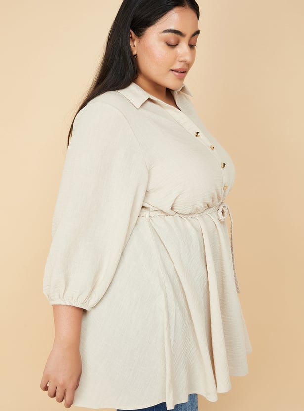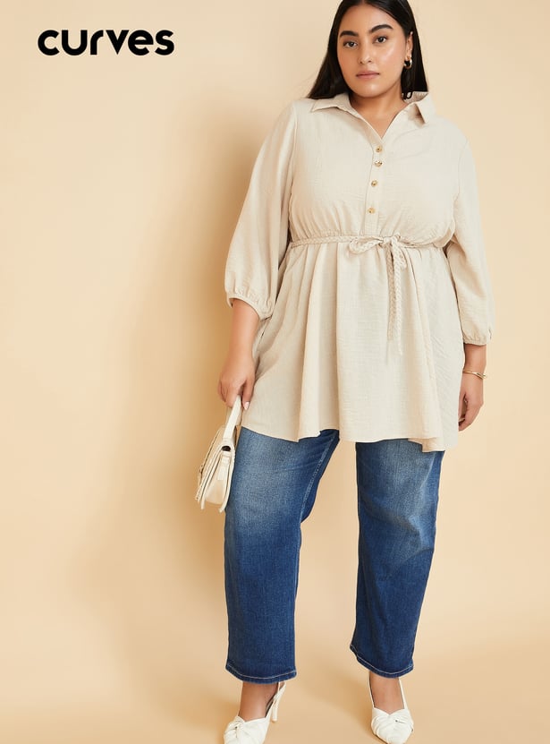 Seize the day with this solid tunic, featuring a spread collar, three-quarter sleeves, and a stylish tie-up detail. The button placket adds a touch of sophistication, making it perfect for both casual and semi-formal occasions. Model Size :