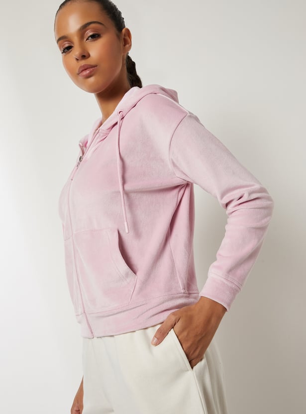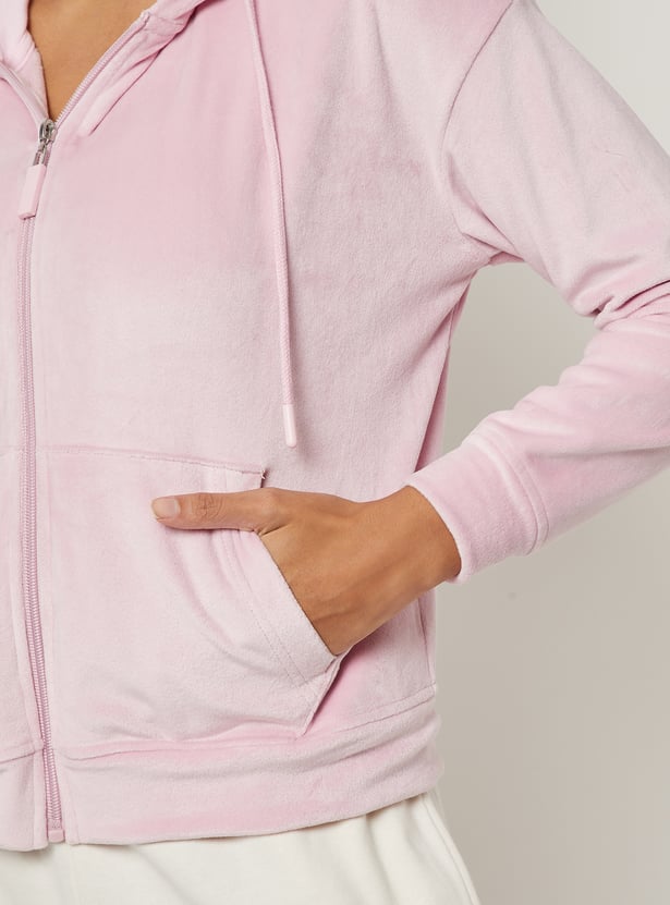 Women Solid Velour Jacket
